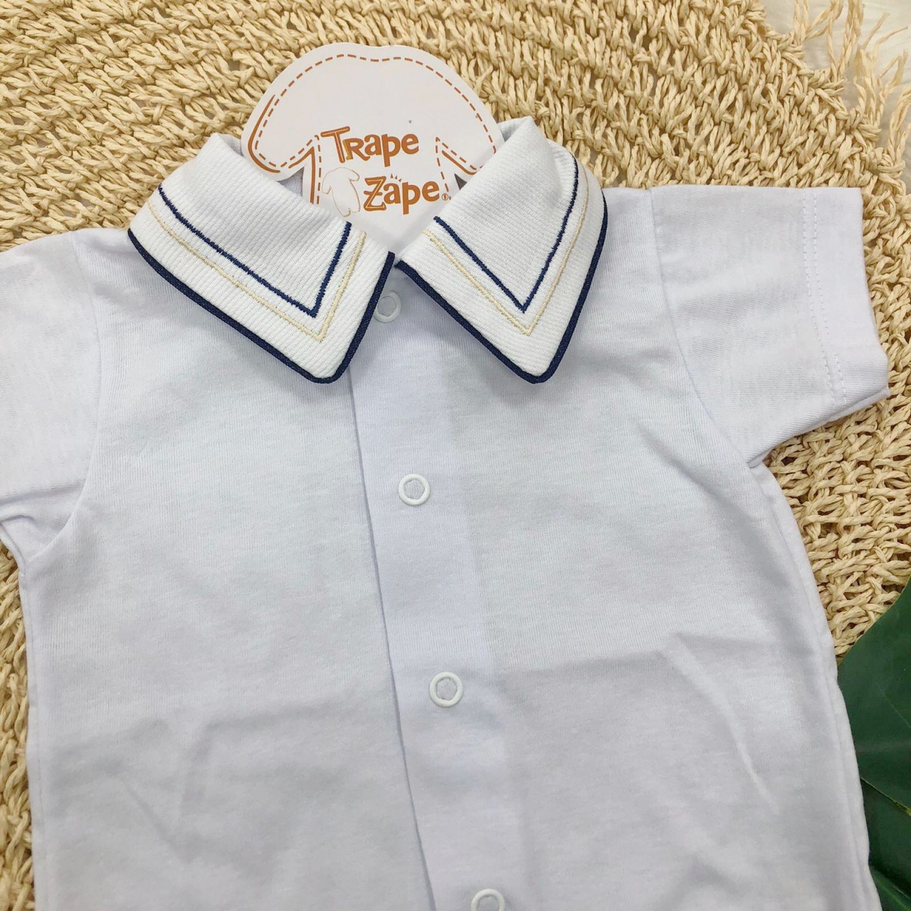 - Modelo: body gola bordada MANGA CURTA- linhas marinho e bege
