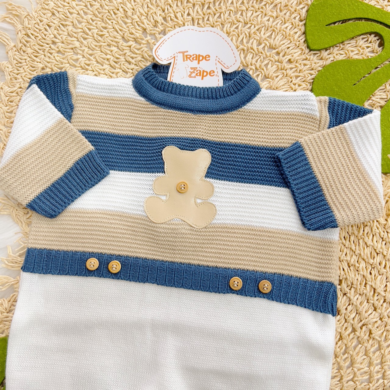 - Modelo: Saída maternidade Fernando - Azul Jeans e Bege