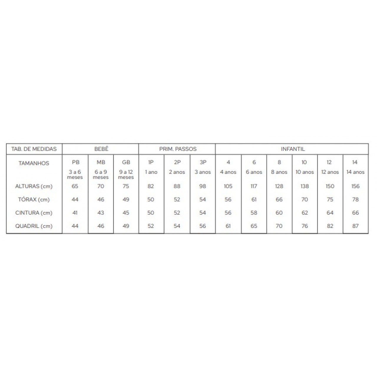 *Tamanhos de referência, podendo variar de criança para criança.