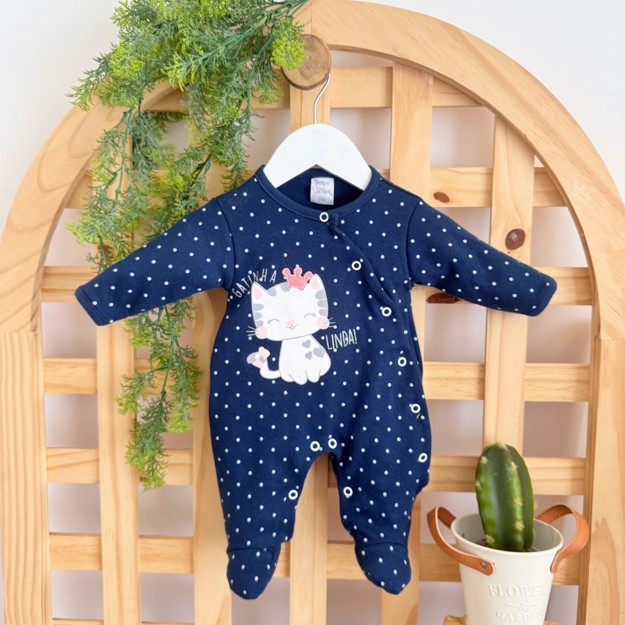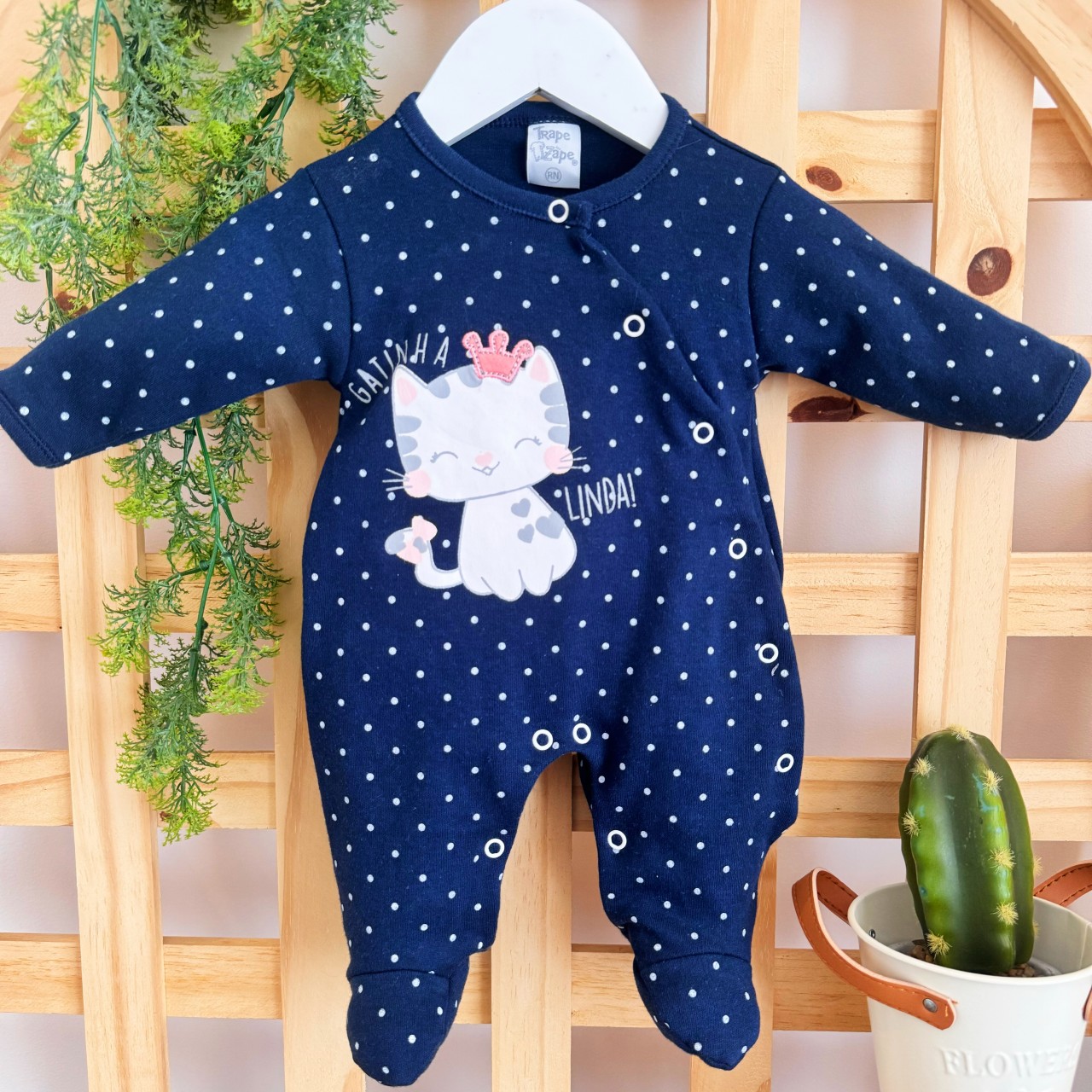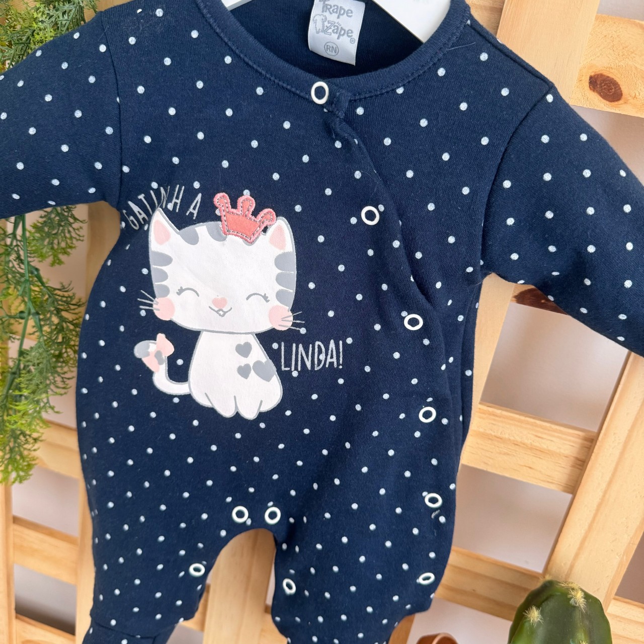 Macacão Malha Trape Zape - Gatinha Linda - Marinho