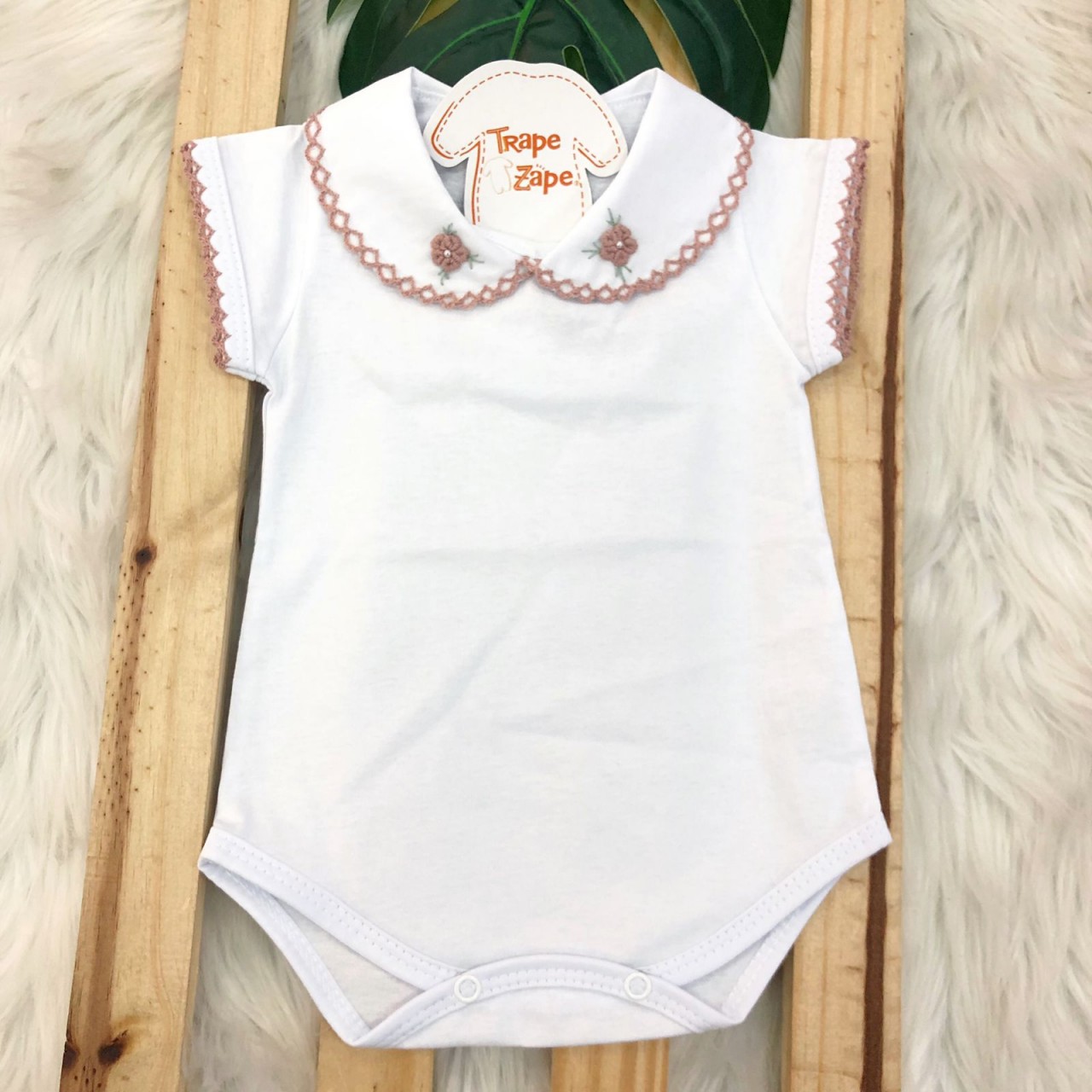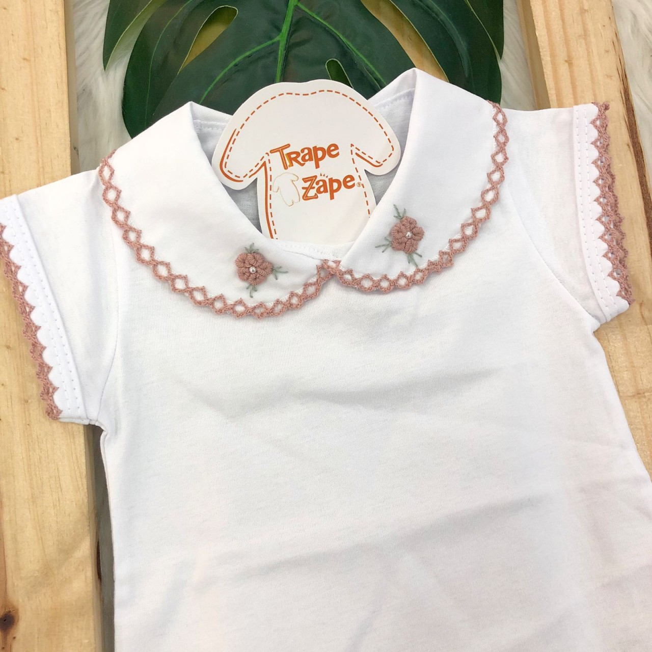 - Modelo: Body gola Bordada manga curta- Duas flores Rosê