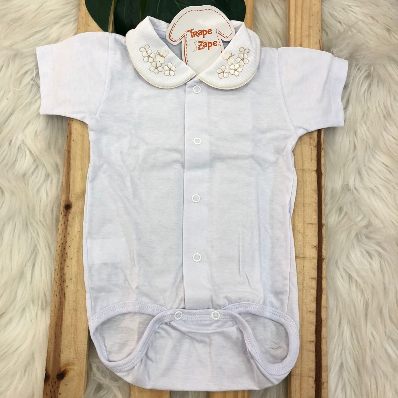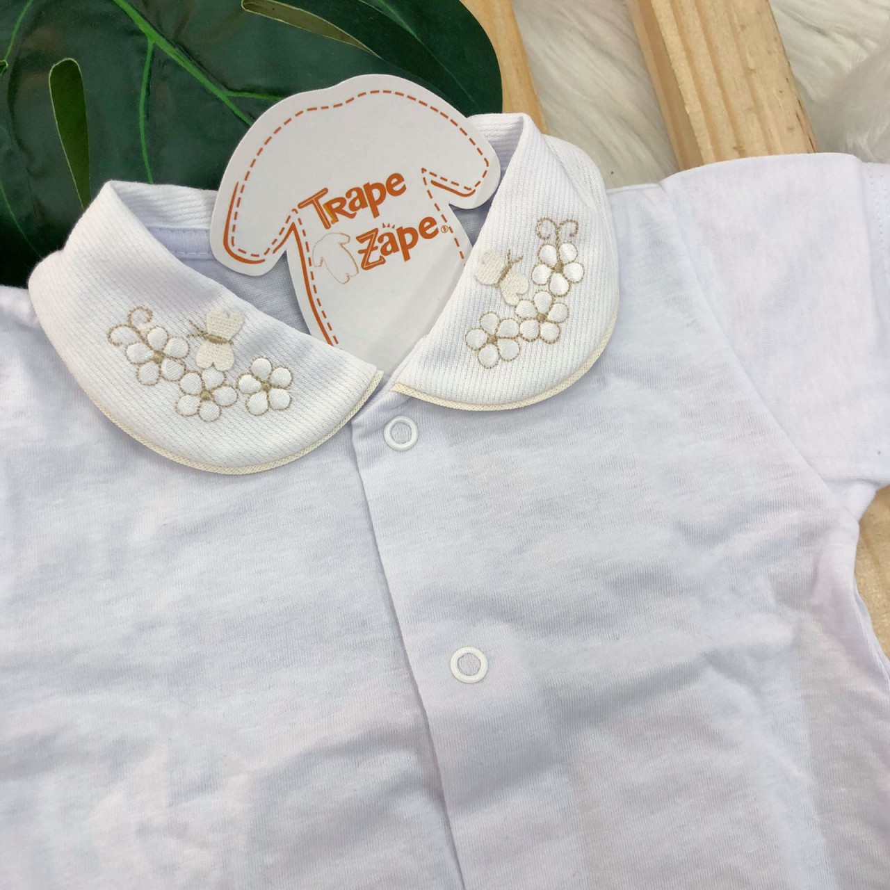 - Modelo: body gola bordada MANGA CURTA- borboleta Bege