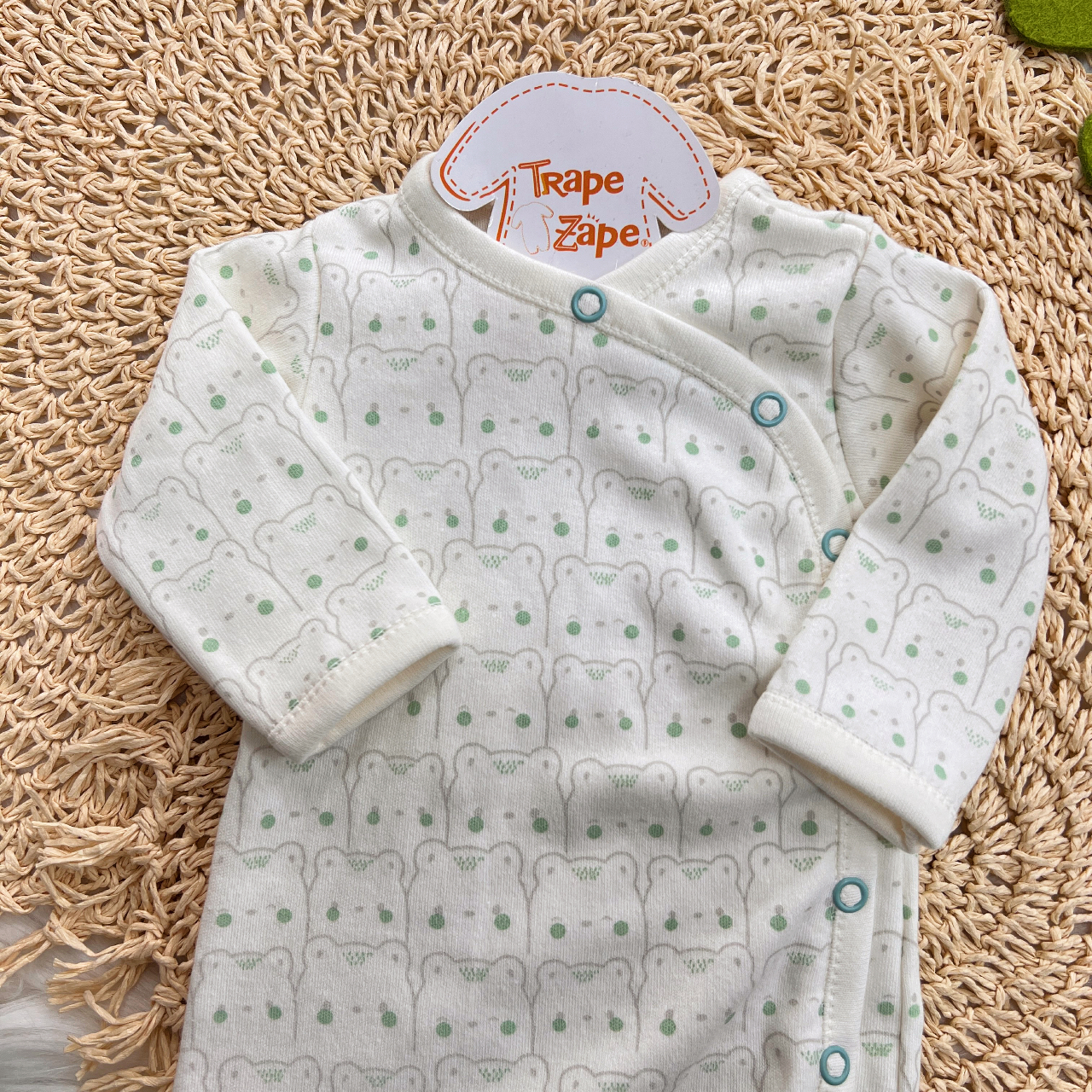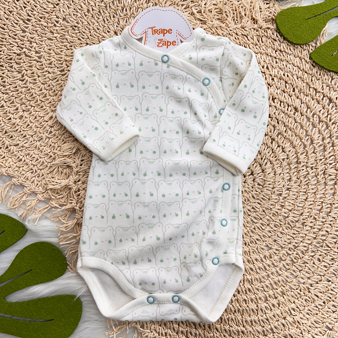 - Modelo: Body Kimono Manga Longa - Ursinhos - Off White e Verde