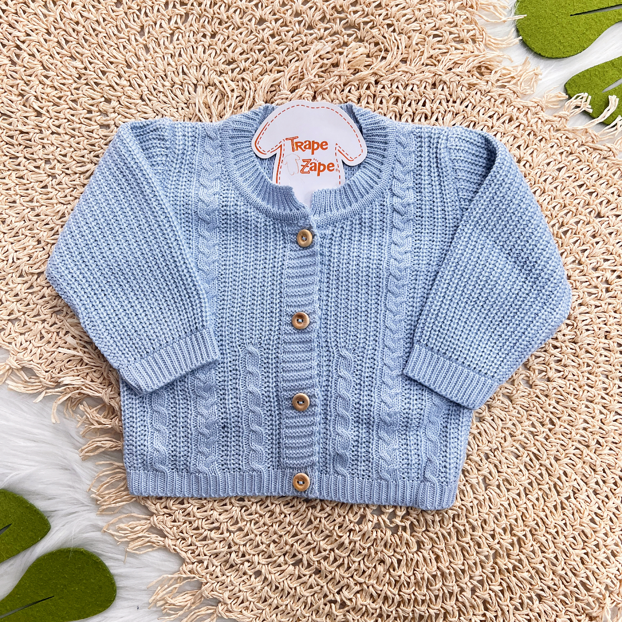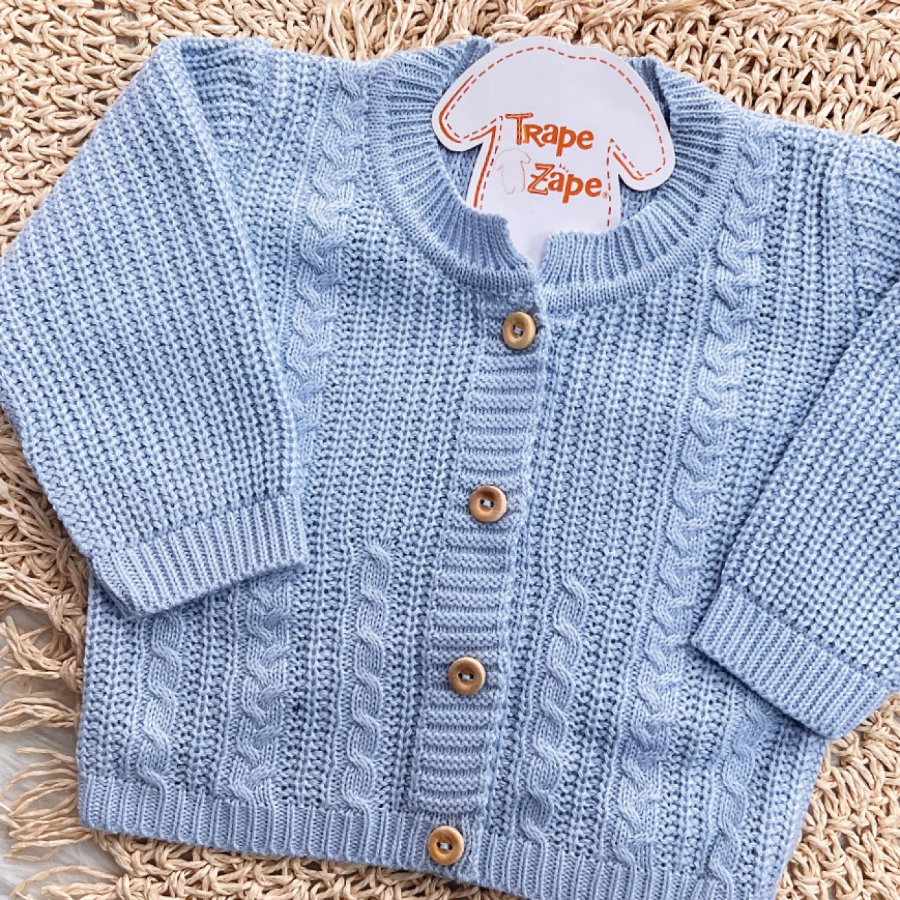 Casaco de Linha Ponto Alto com Botões - Azul Bebê