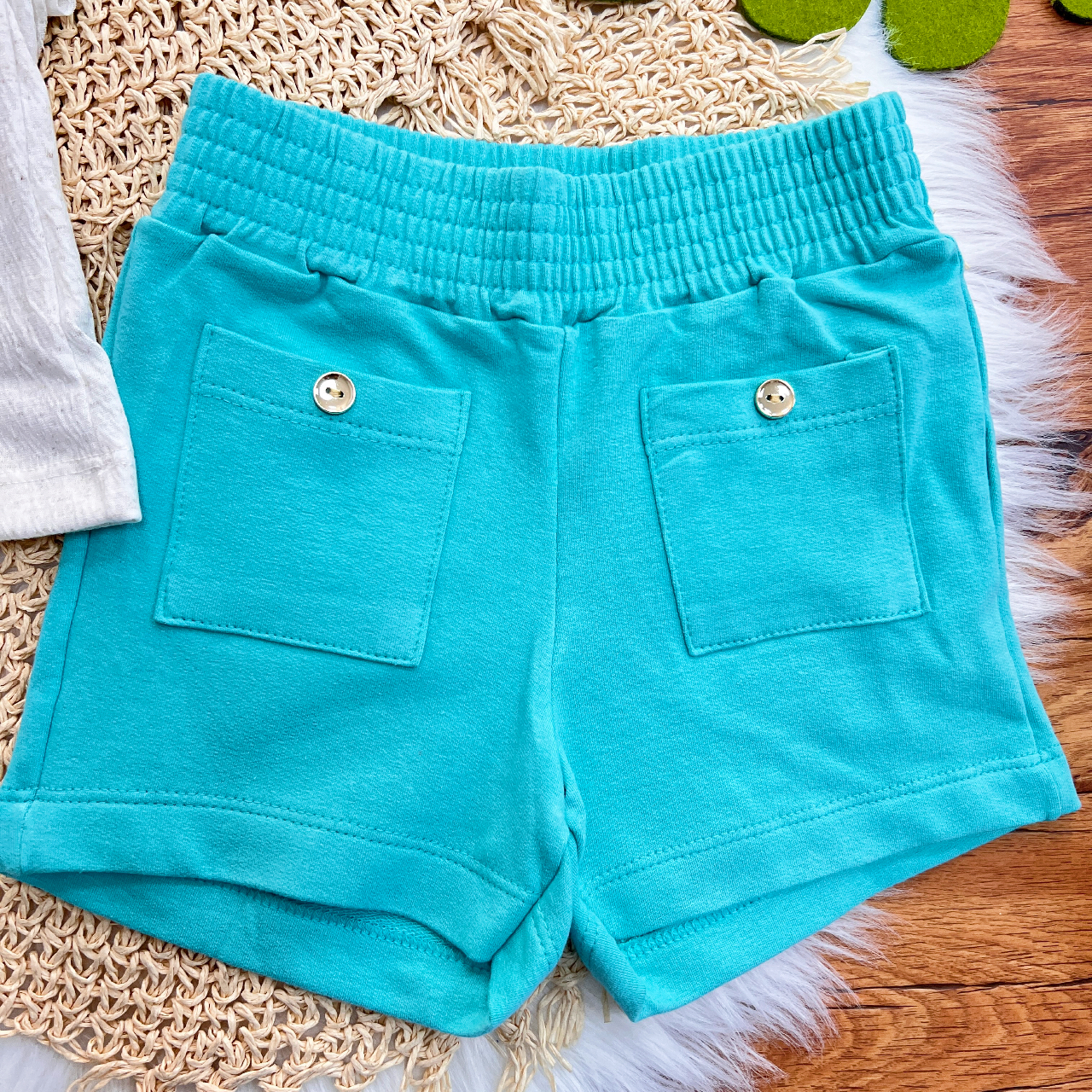 01- Blusa em Malha - 89% Poliéster 8% Linho 3% Elastano01- Short em Moletinho - 96% Algodão 4% Elastano