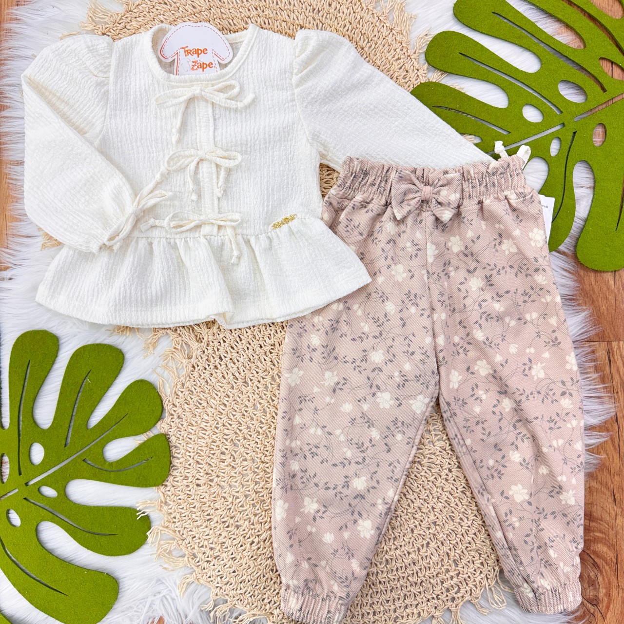 Tags:Conj., Batinha, Manga, Longa, Anarruga, Laços, Calça, Floral, Areia