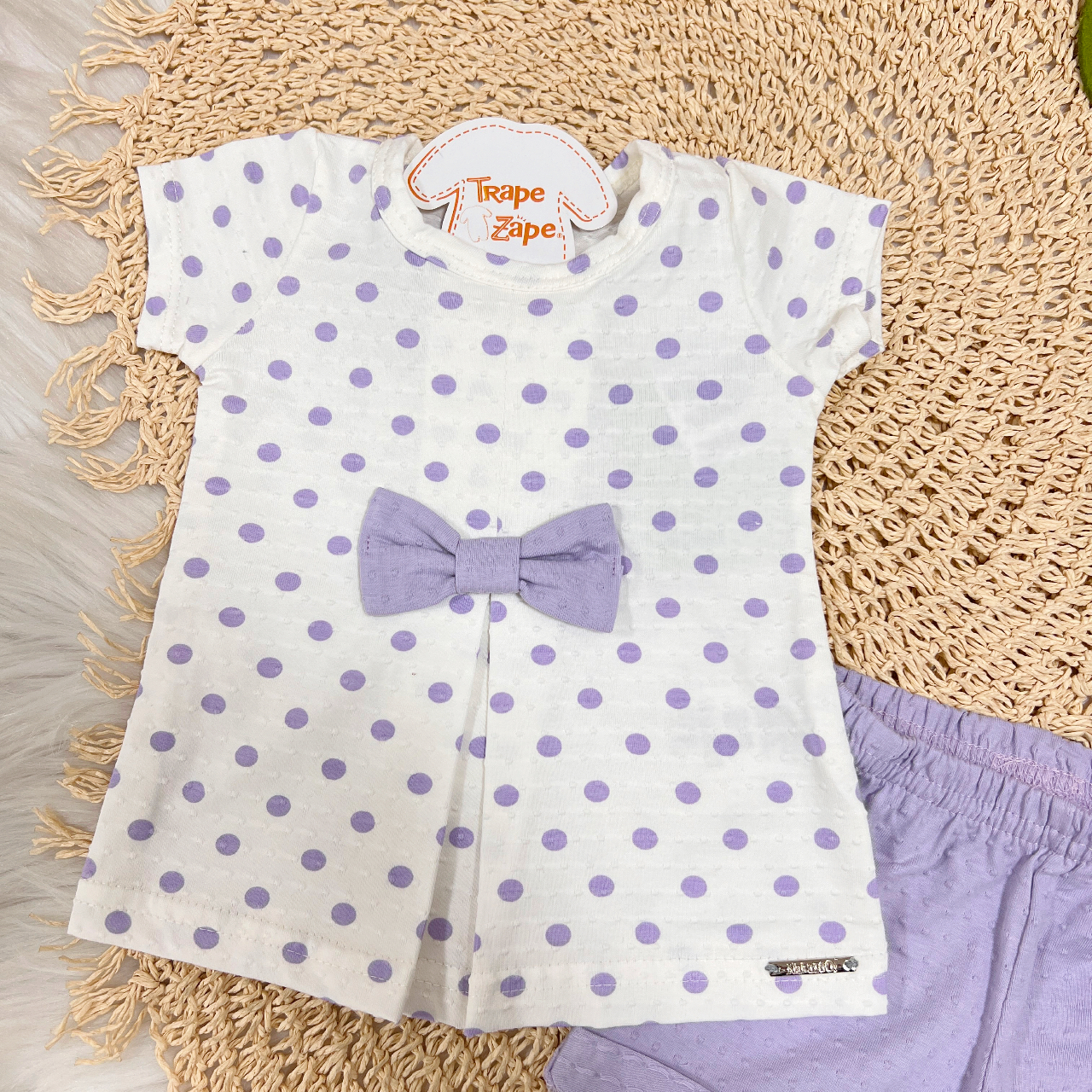 Tags:Conj., Blusa, Bolinhas, Short, Lilás, Branco