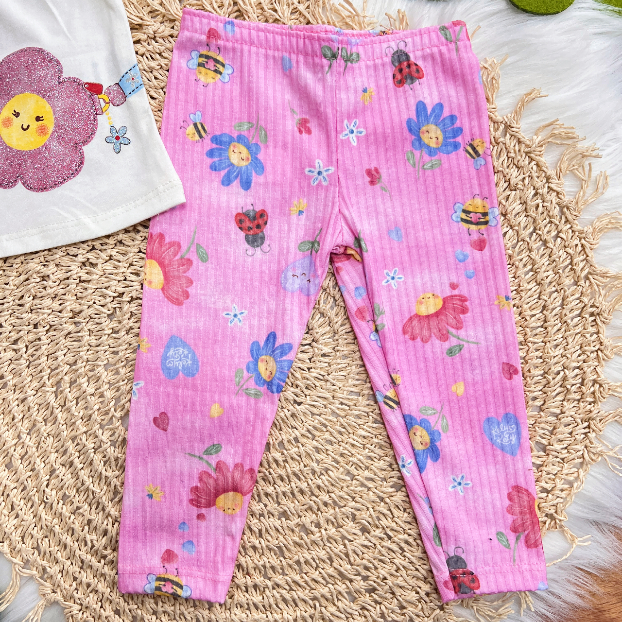 01- Blusa em Malha - 100% Algodão01- Calça Legging Canelada - 85% Poliéster como Mínimo
