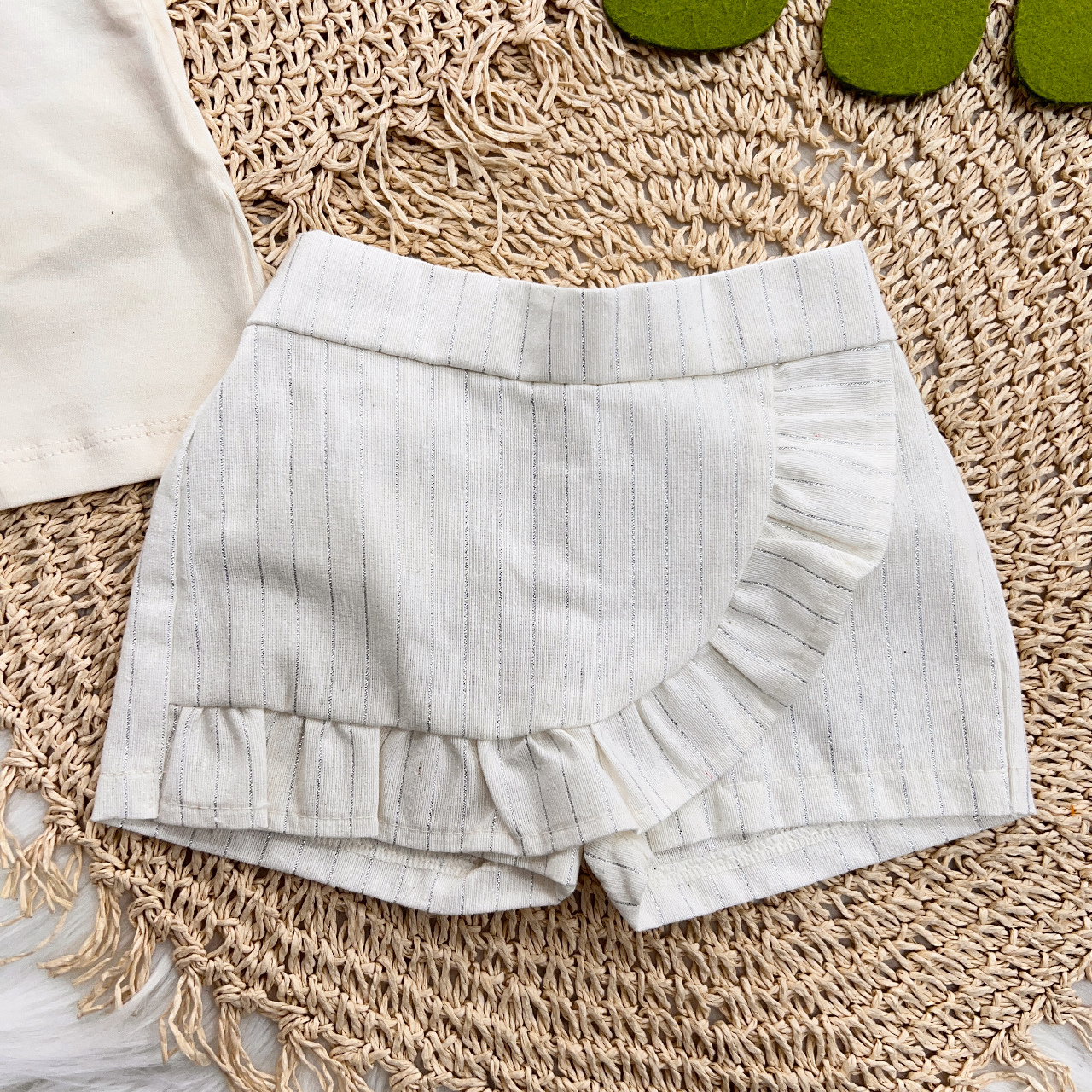 01- Blusa em Malha - 96% Algodão 4% Elastano01- Short em Linho - 100% FIBRAS DIVERSAS
