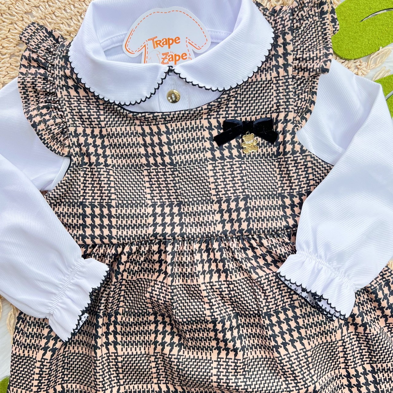 Tags:Conj., Blusa, Manga, Longa, Bordada, Salopete, Plush, Marrom, Branco, Acetinado