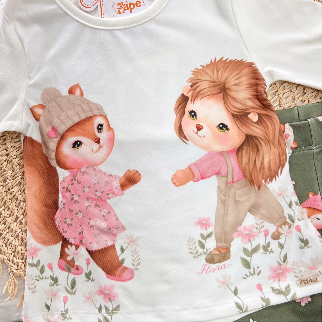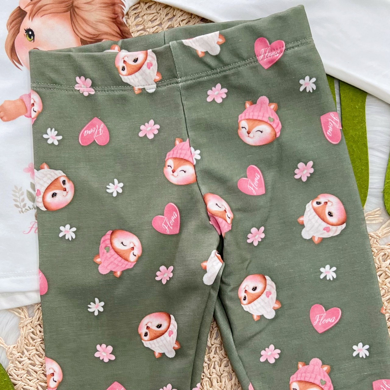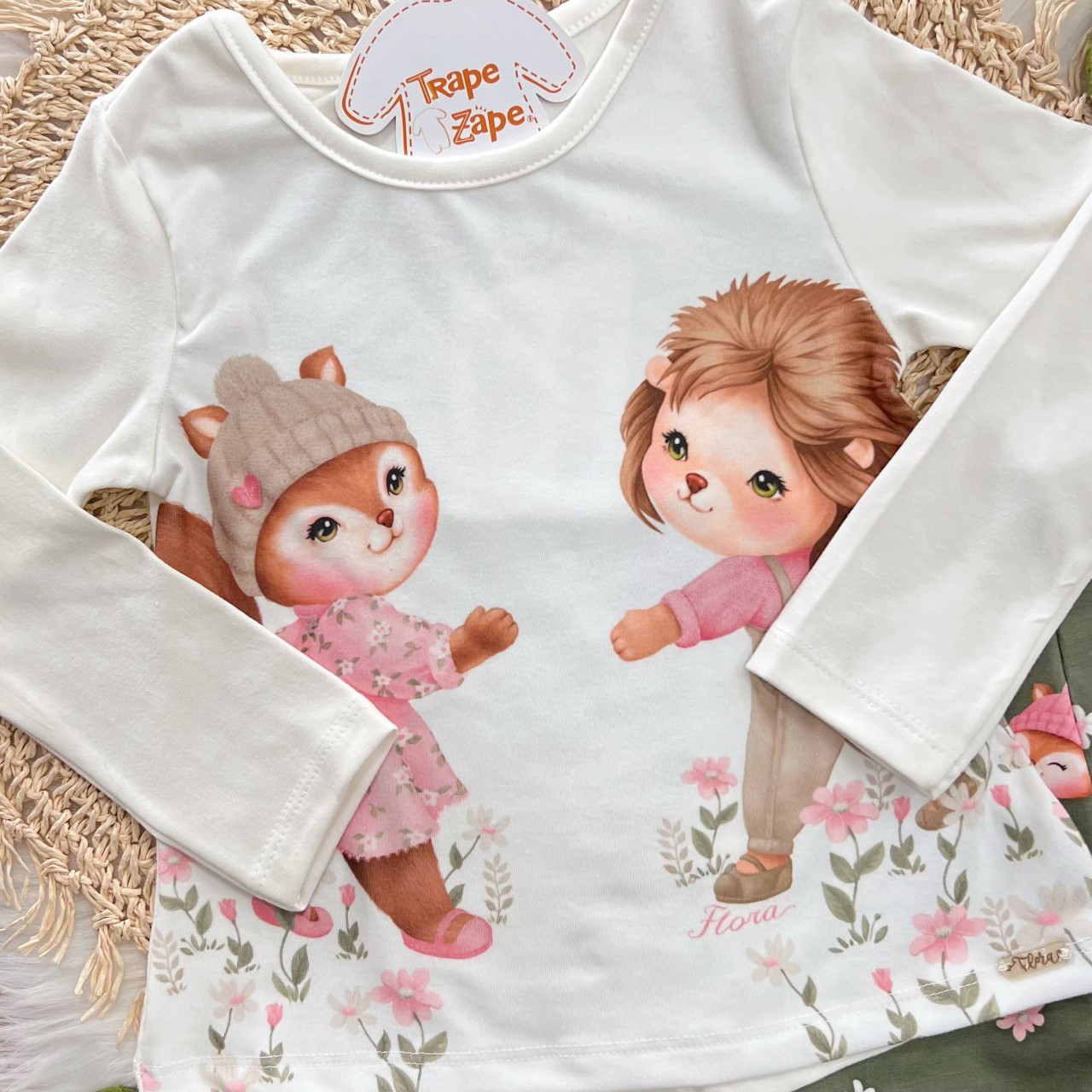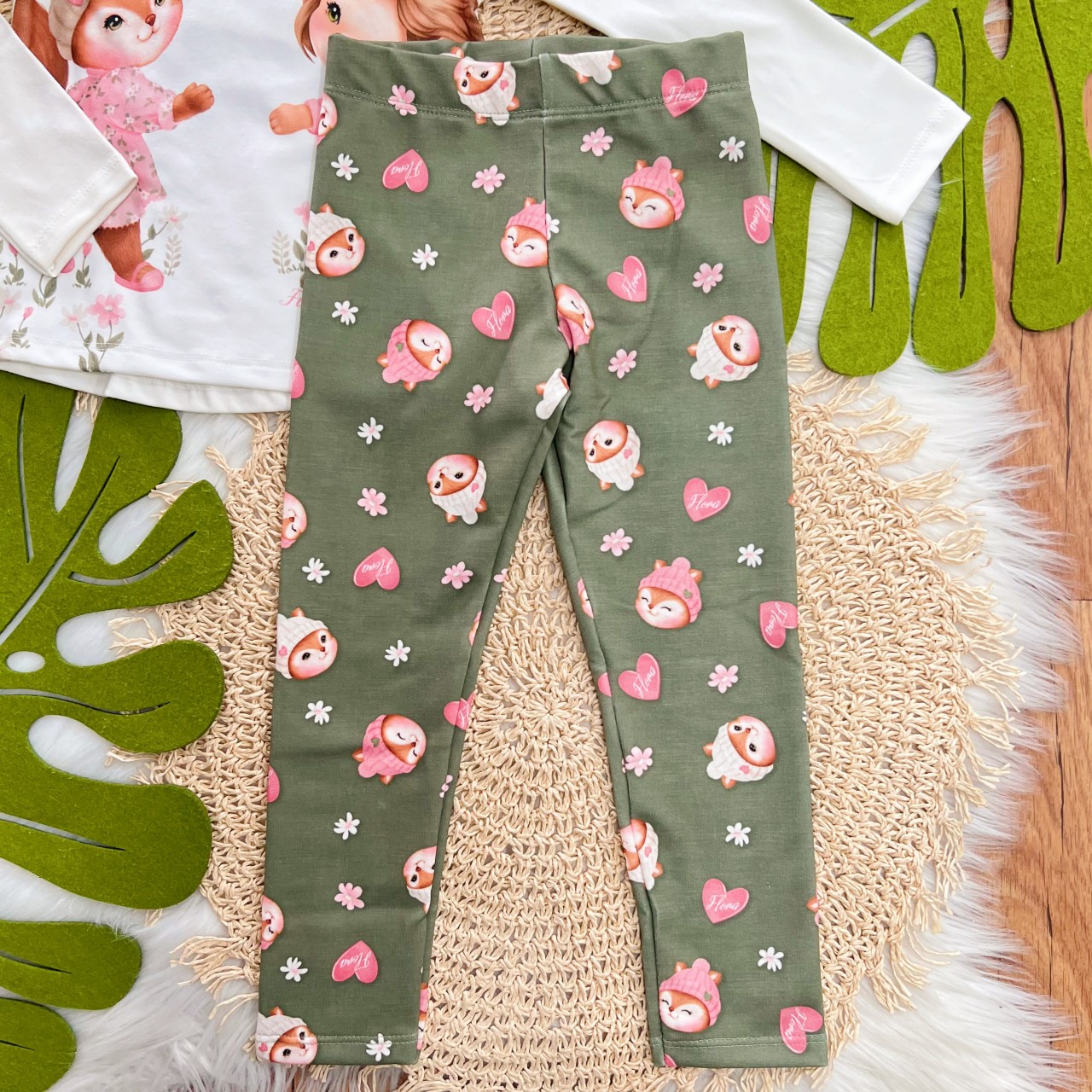Tags:Conj., Blusa, Manga, Longa, Raposinha, Calça, Legging, White, Verde