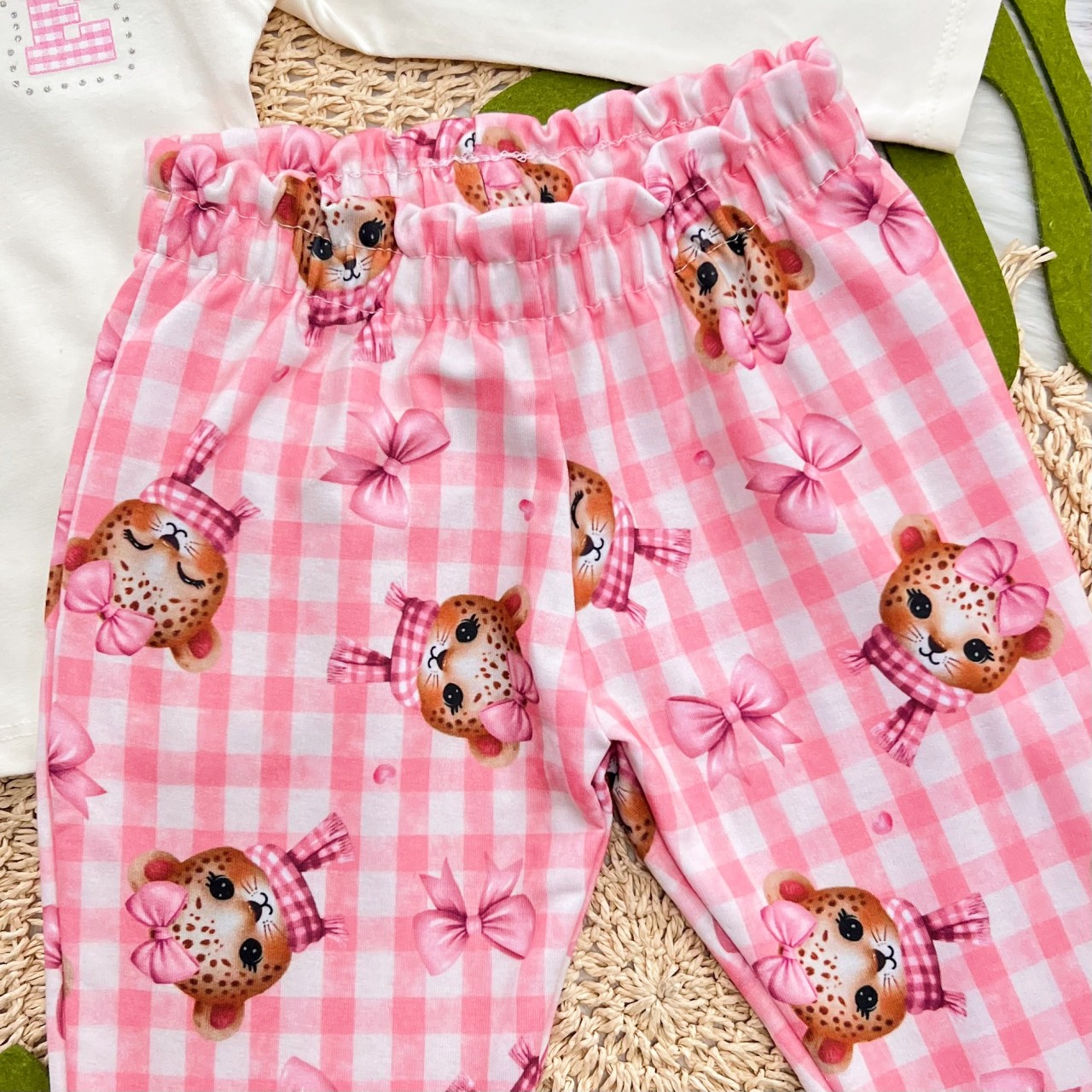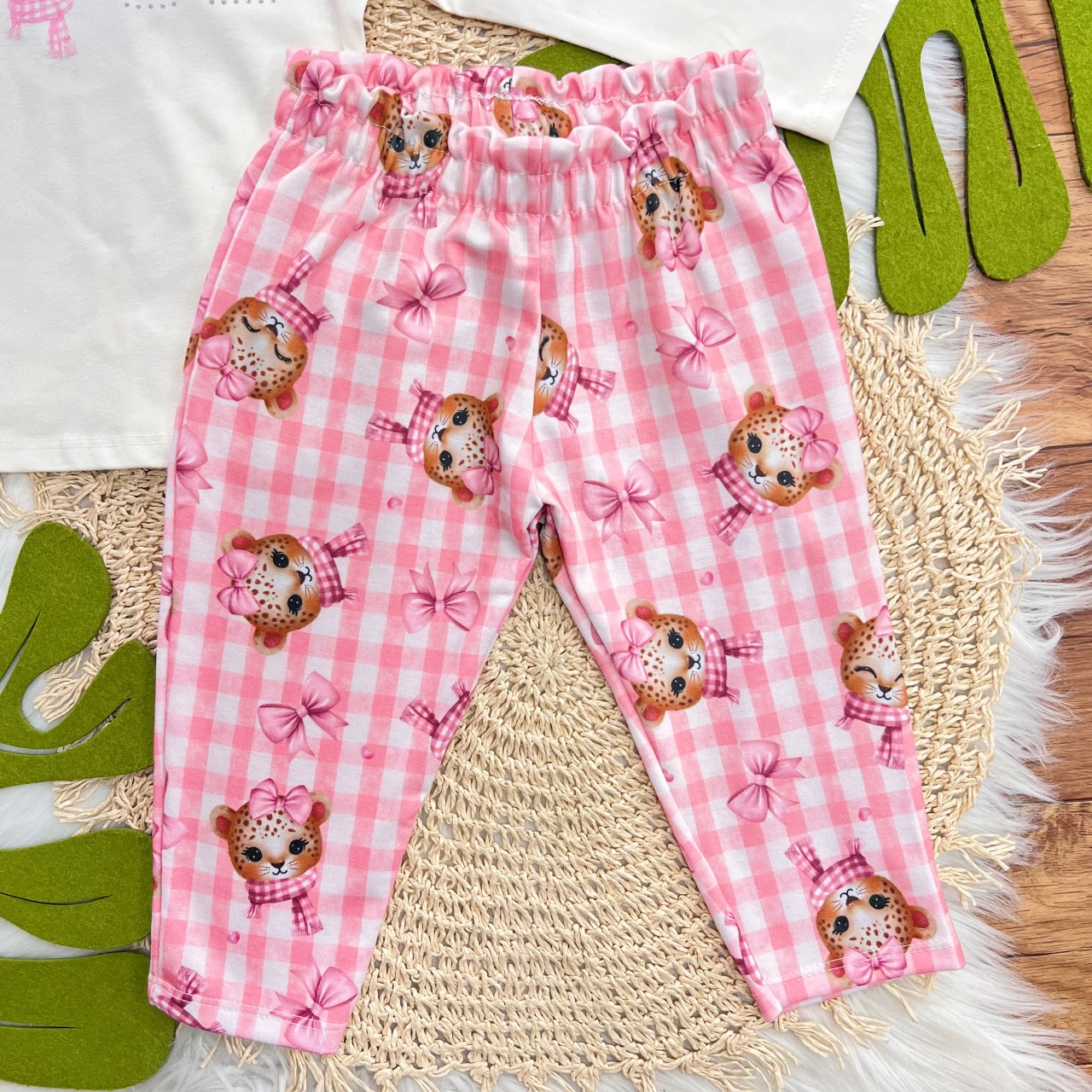 Tags:Conj., Blusa, Manga, Longa, Oncinha, Calça, Xadrez, White