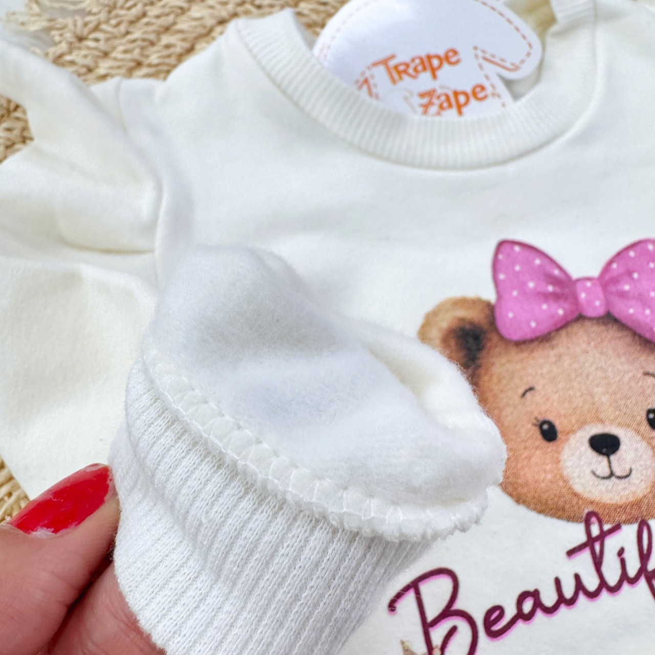 Conj. Blusa Moletom I'm So Beautiful e Calça Ursinhas - Off White Bordo