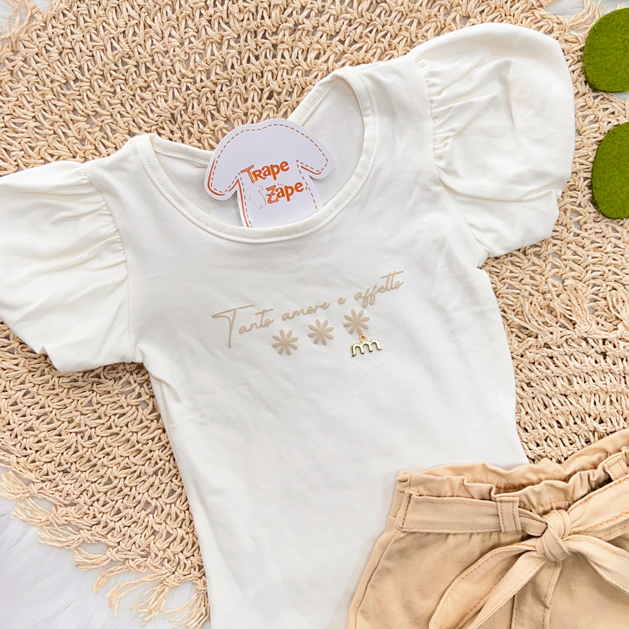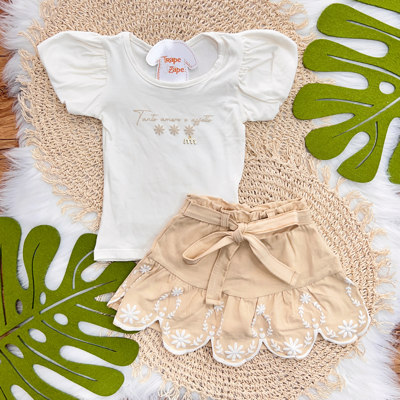 Tags:Conj., Blusa, "Tanto, Amore, Affetto", Short, Raminhos, Flores, Areia