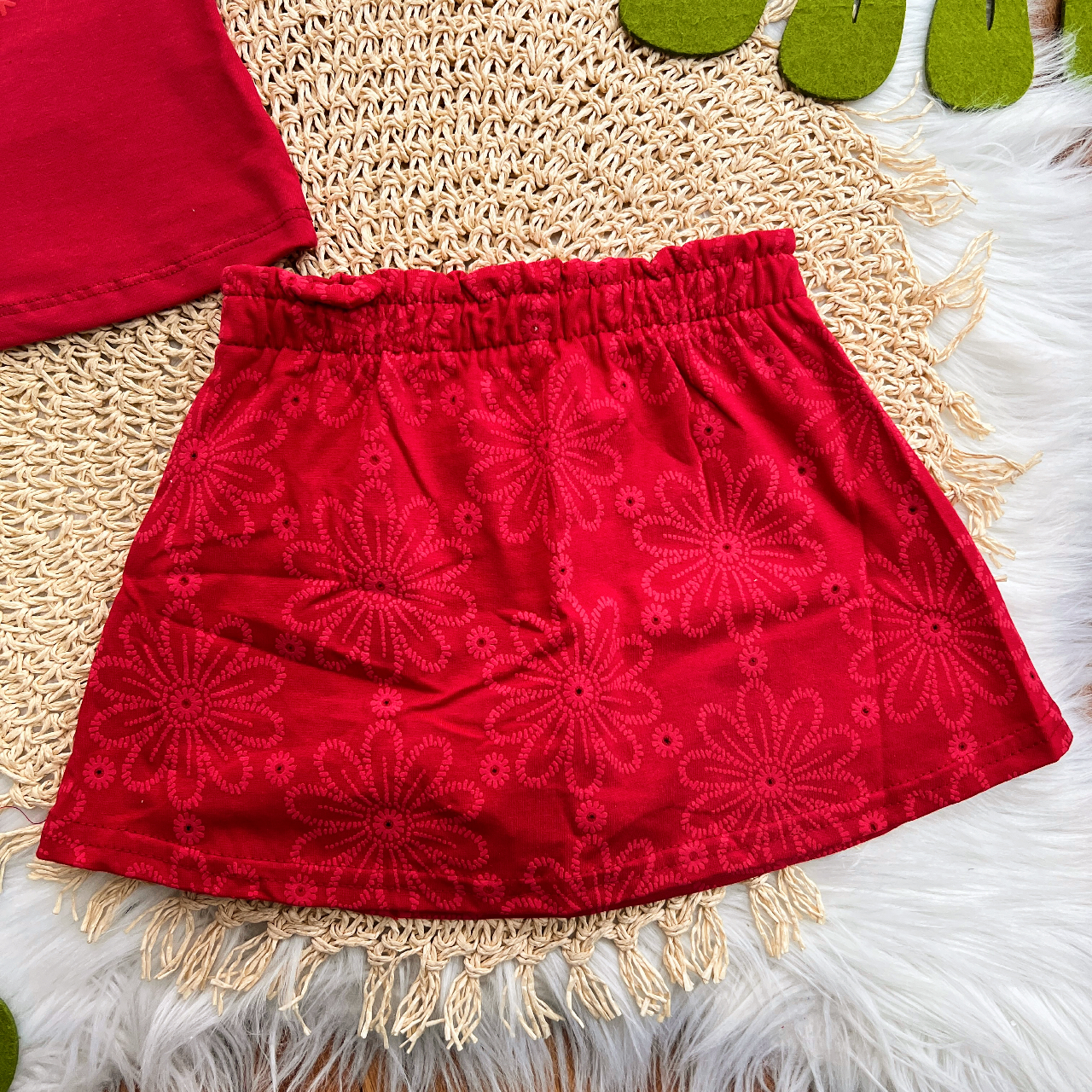 01- Blusa em Malha - MANGAS 100% Algodão CORPO 96% Algodão 4% Elastano01- Short Saia - SAIA 100% Algodão SHORT 96% Algodão 4% Elastano
