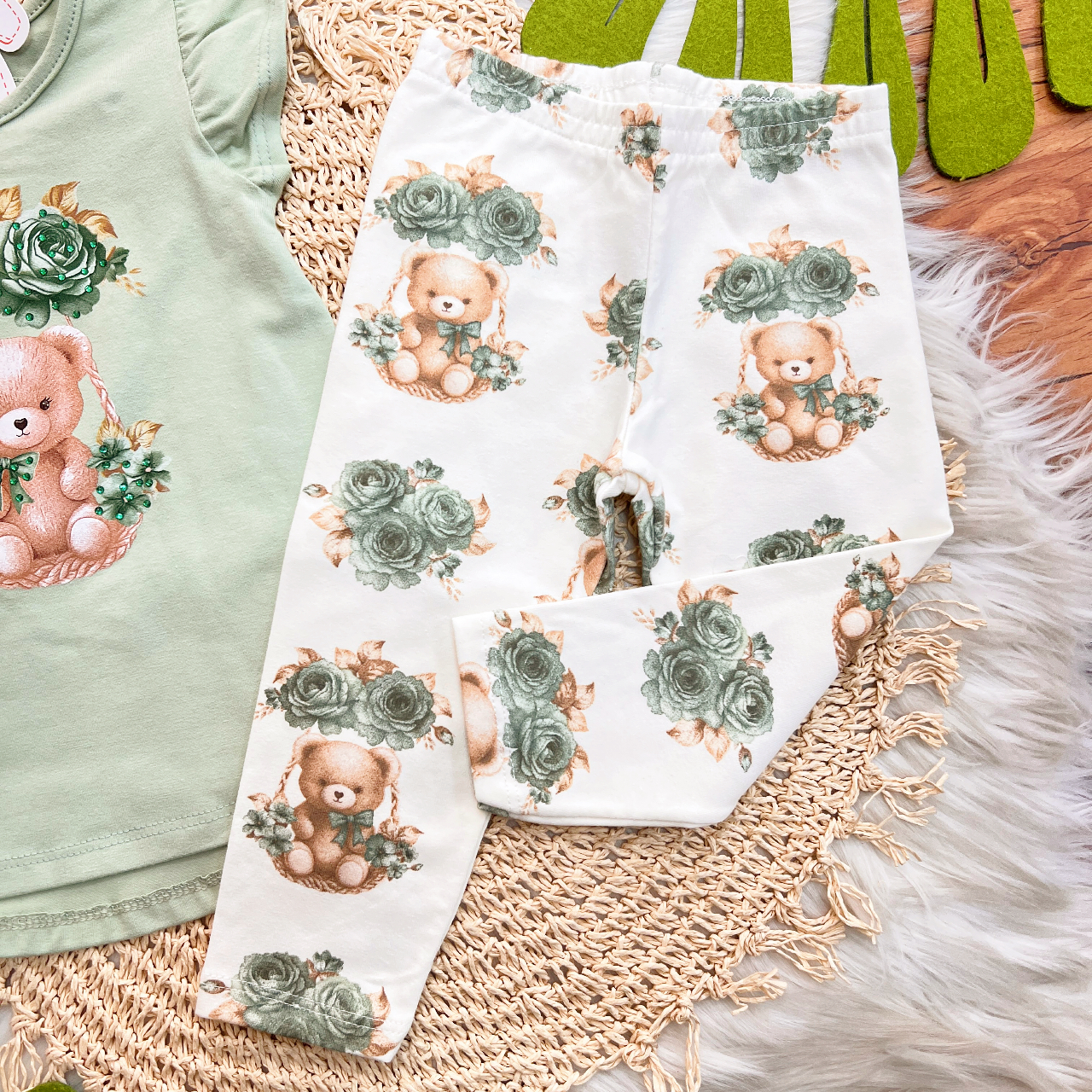 Tags:Conj., Blusa, Ursinha, Flores, Verde, Legging, White, Verde