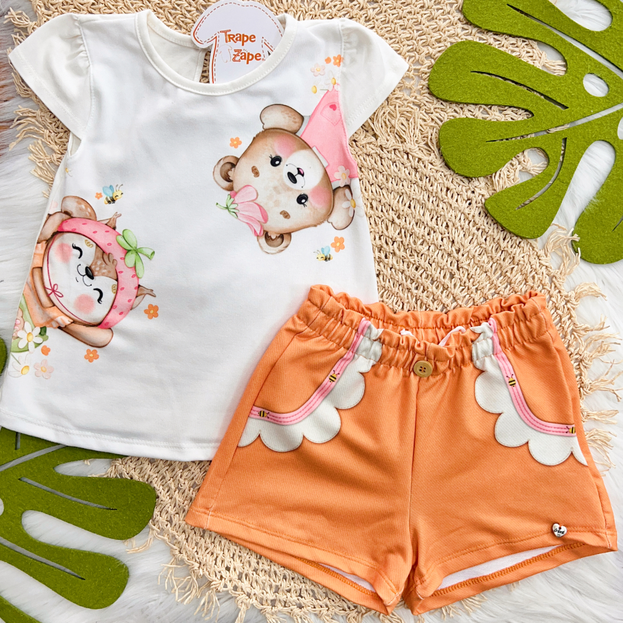 Tags:Conj., Blusa, Ursinha, Raposinha, Short, Laranja, White