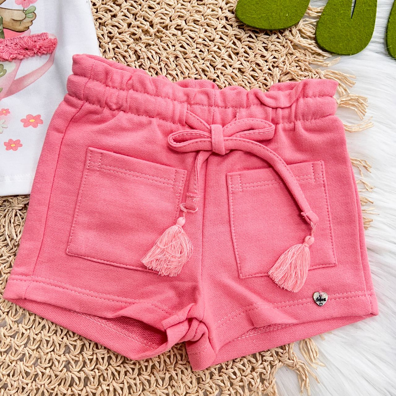 01- Blusa em Malha - COSTAS/MANGAS 100% Algodão FRENTE 92% Poliéster 8% Elastano01- Short em Moletinho - 100% Algodão