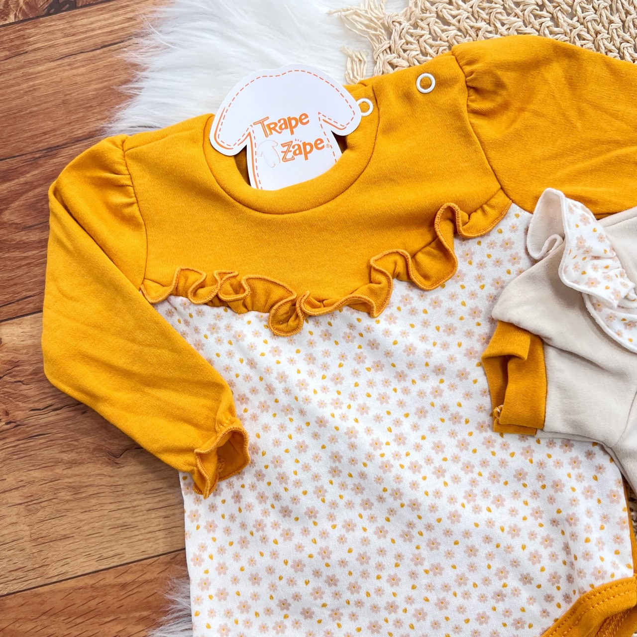 Tags:Conj., peças, Flores, , Calça, Babadinho, Mostarda, Areia