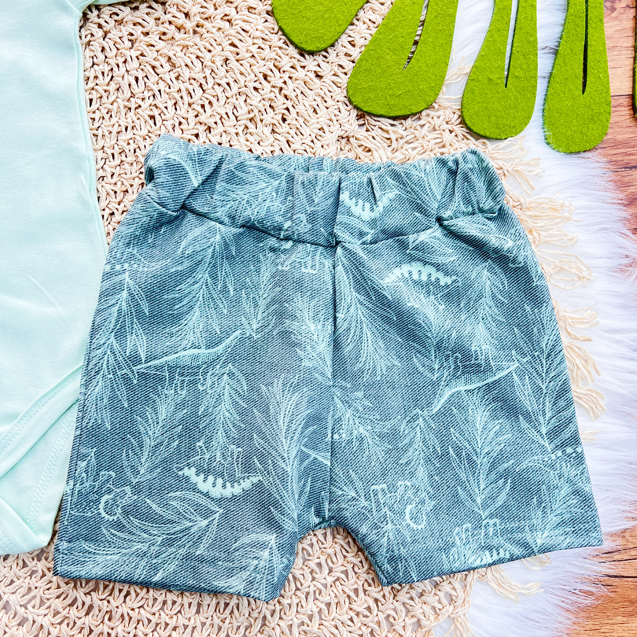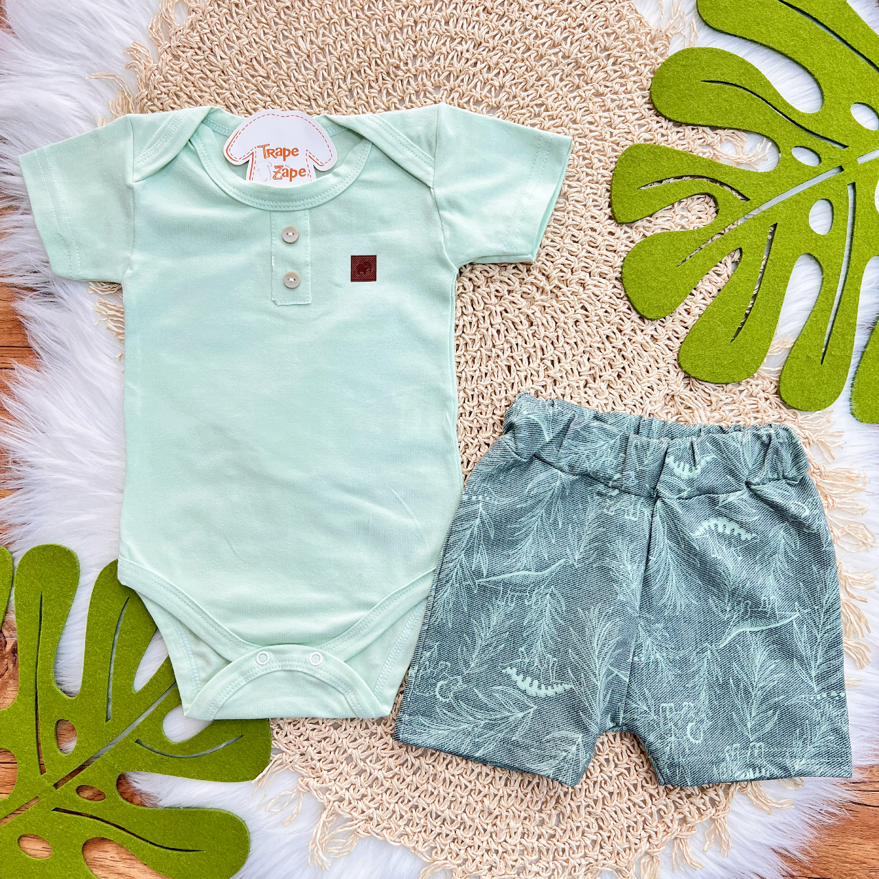 Tags:Conj., Manga, Curta, Bermuda, Folhagem, Verde, Menta