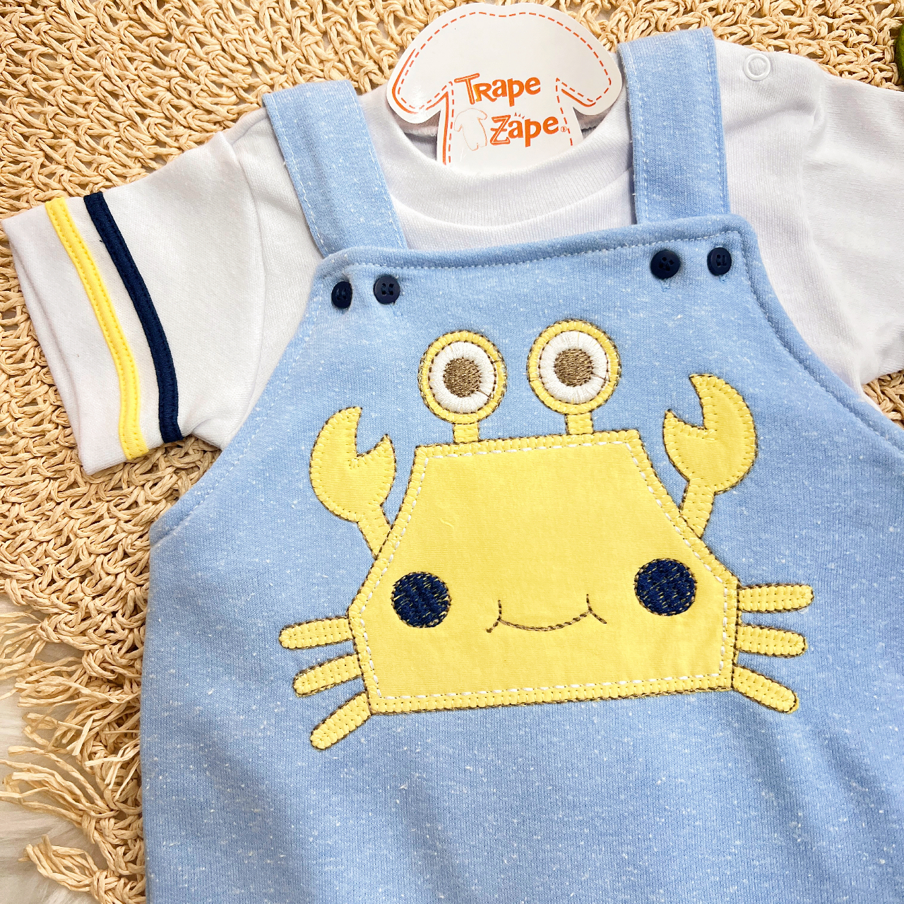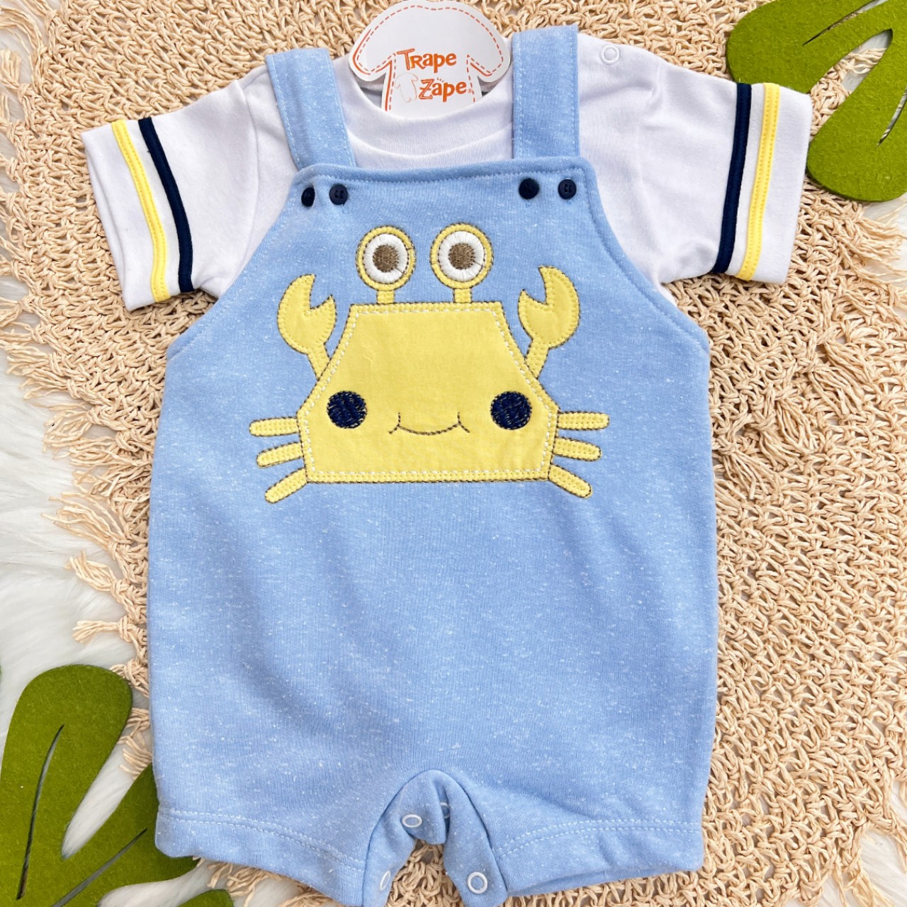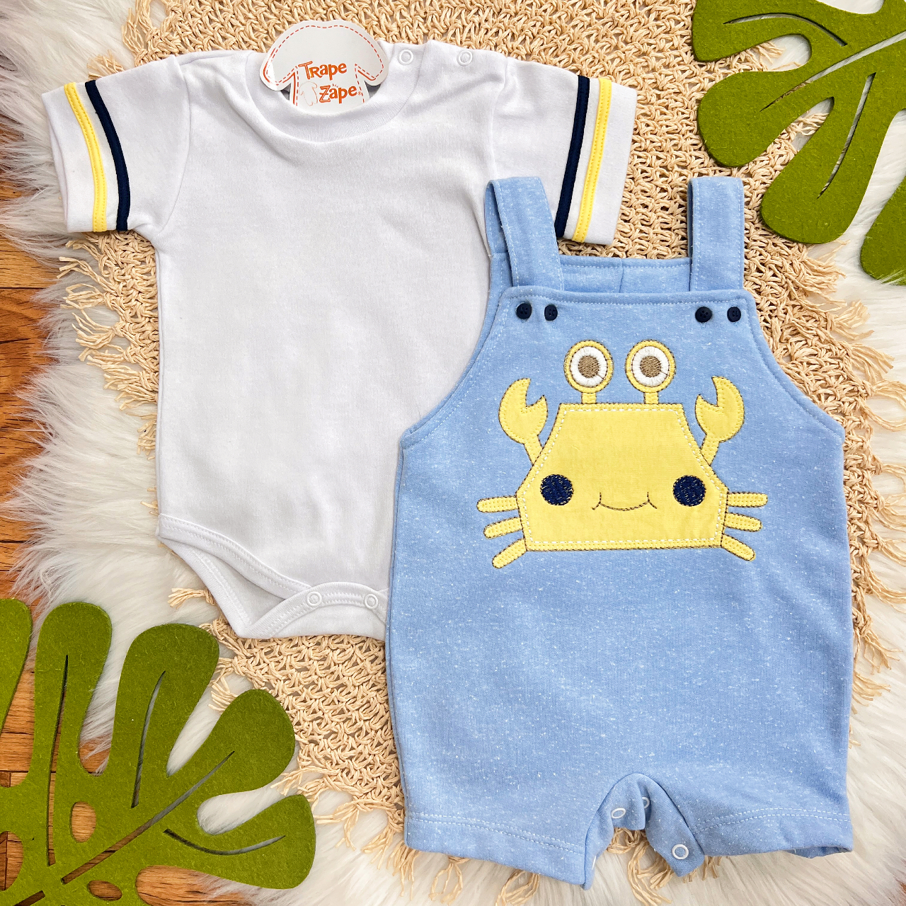 Tags:Conj., Manga, Curta, Jardineira, Caranguejo, Branco, Claro