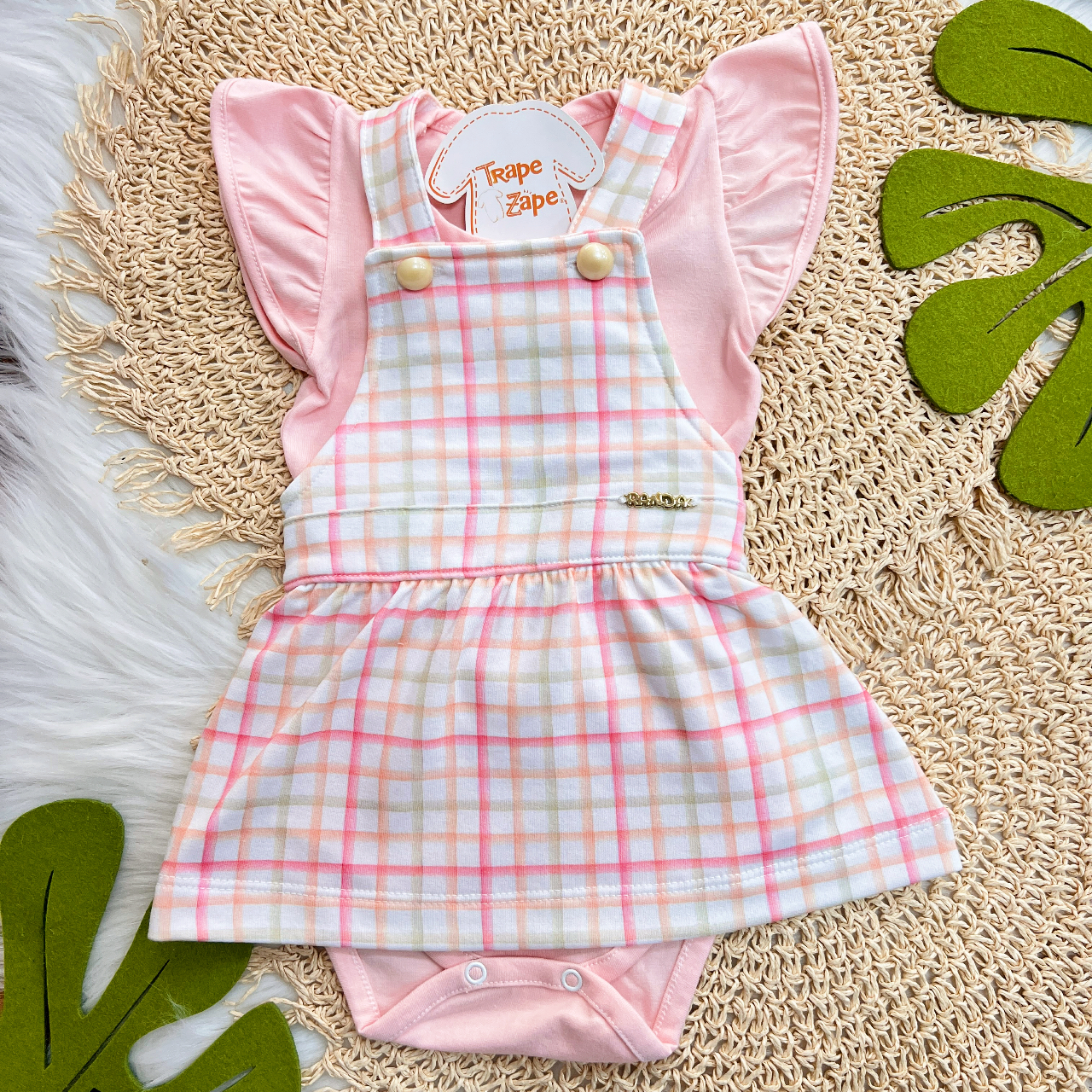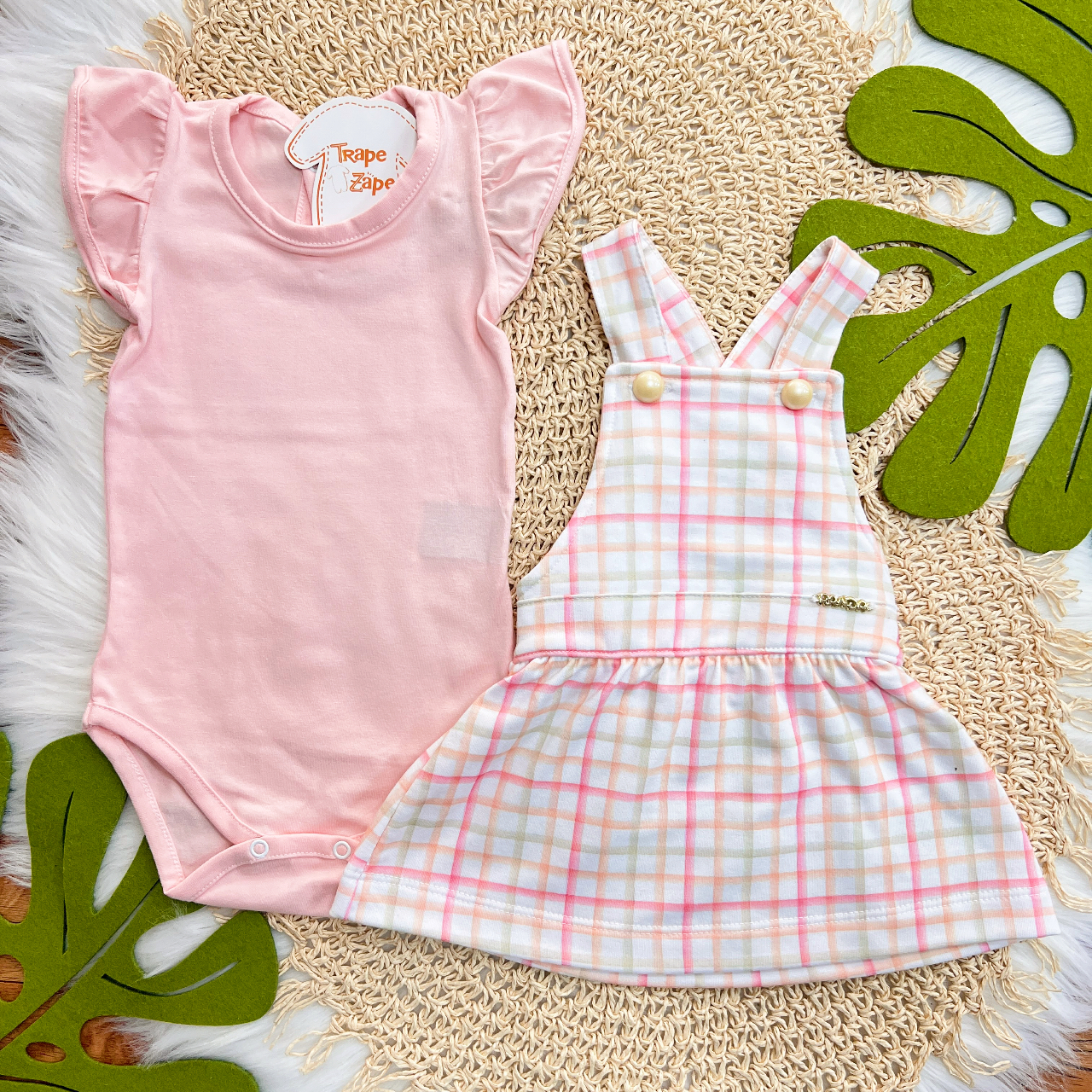 01- Body Manga Curta em Malha - 96% Algodão 4% Elastano01- Salopete em Moletinho - 73% Poliéster 23% Algodão 4% Elastano