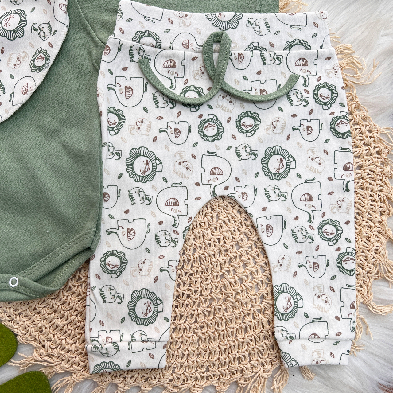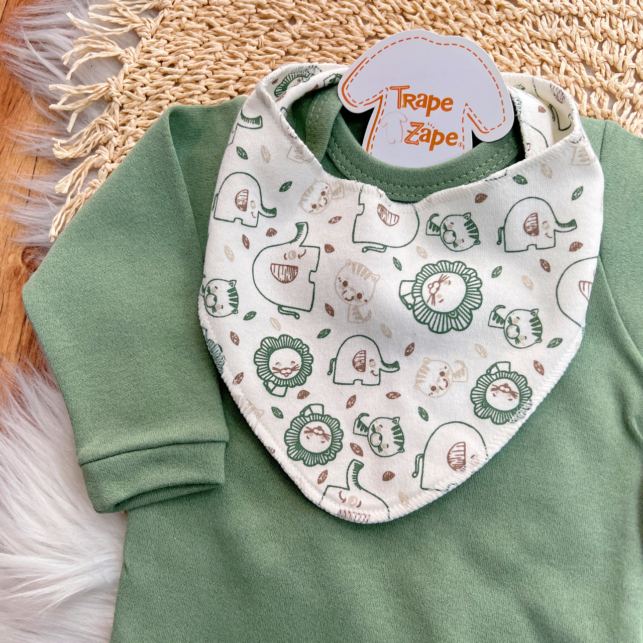 Tags:Conj., Manga, Longa, , Calça, Babador, Bandana, Bichinhos, Verde