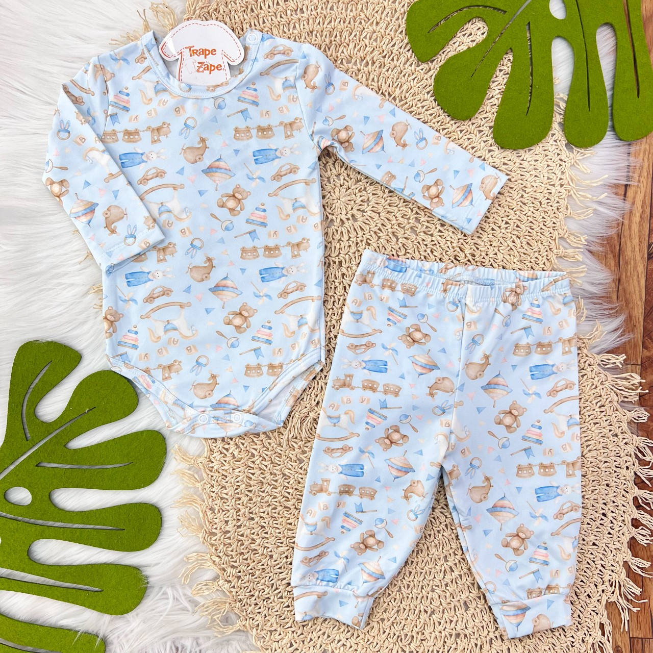Conj. Body Manga Longa e Calça em Malha Térmica com Proteção UV50+- Brinquedos de Bebê