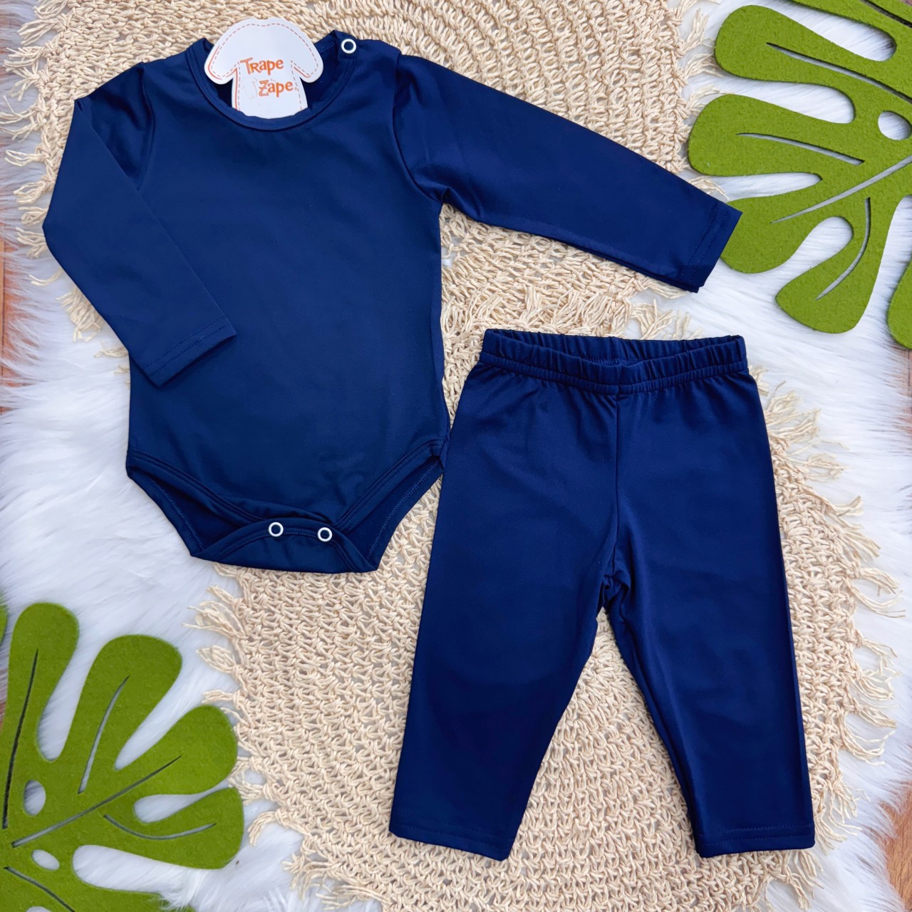 Conj. Body Manga Longa e Calça em Malha Térmica com Proteção UV50+- Marinho