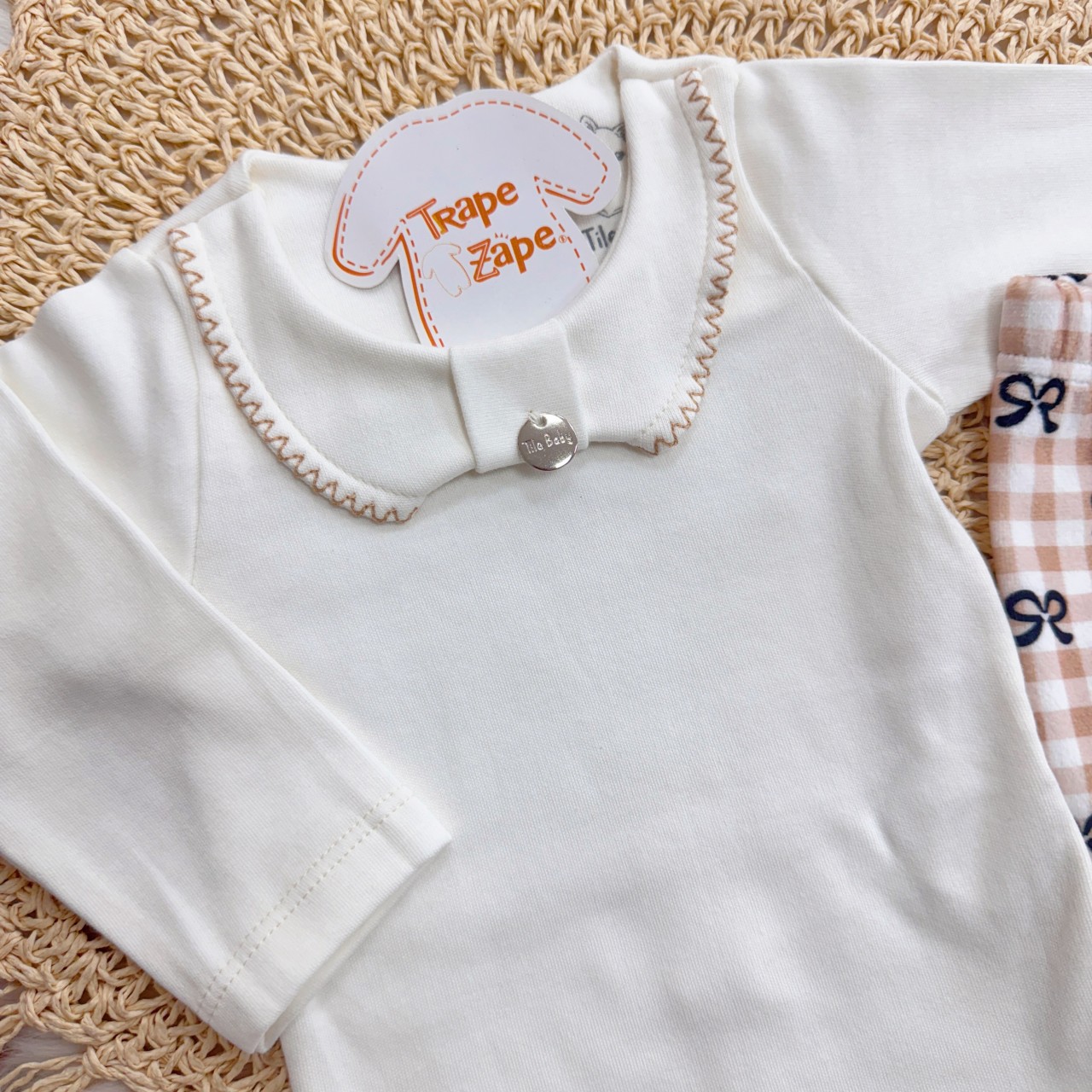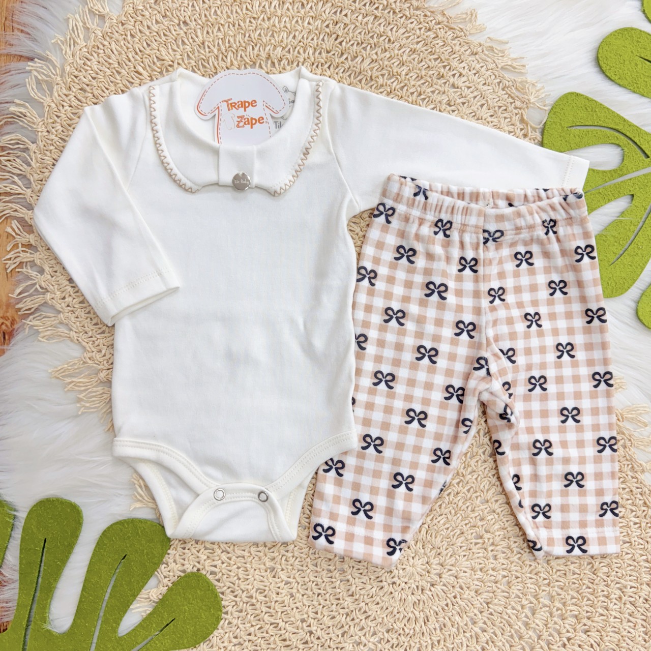 Tags:Conj., Manga, Longa, Bordada, Calça, Plush, Lacinhos, White, Caramelo