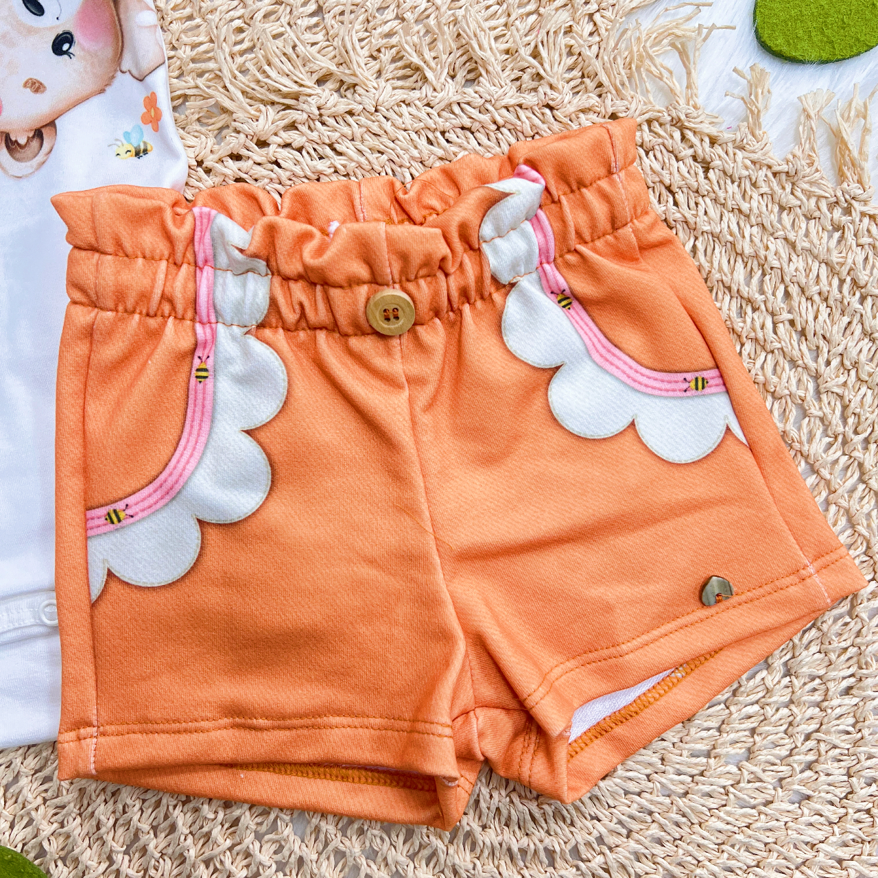 Tags:Conj., Ursinha, Raposinha, Short, Laranja, White
