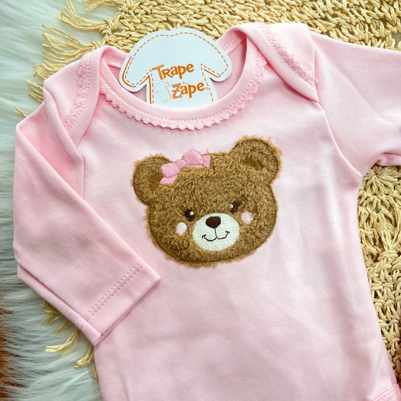 01- Body Manga Longa em Malha - 100% Algodão01- Calça em Plush - 80% Algodão 20% Poliéster