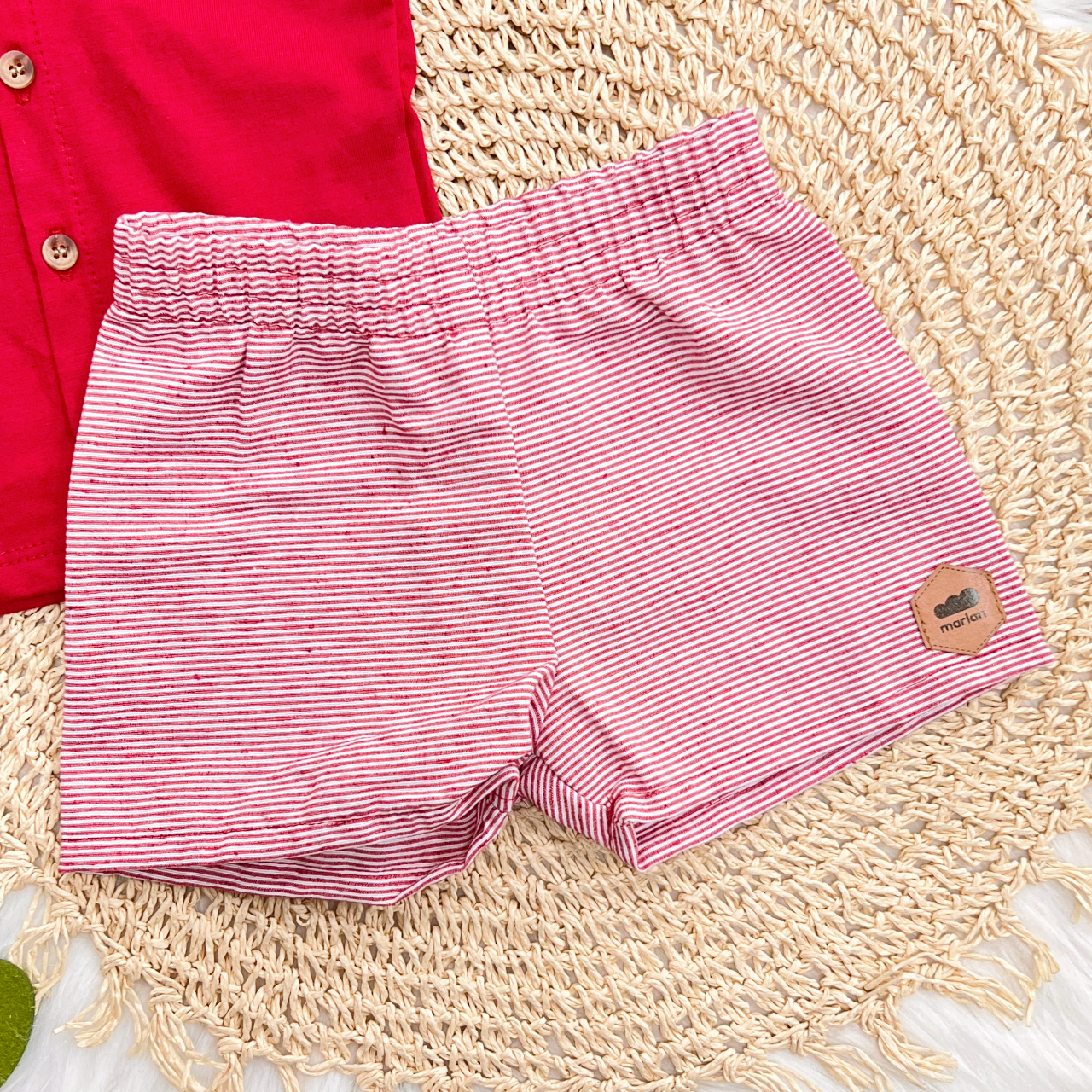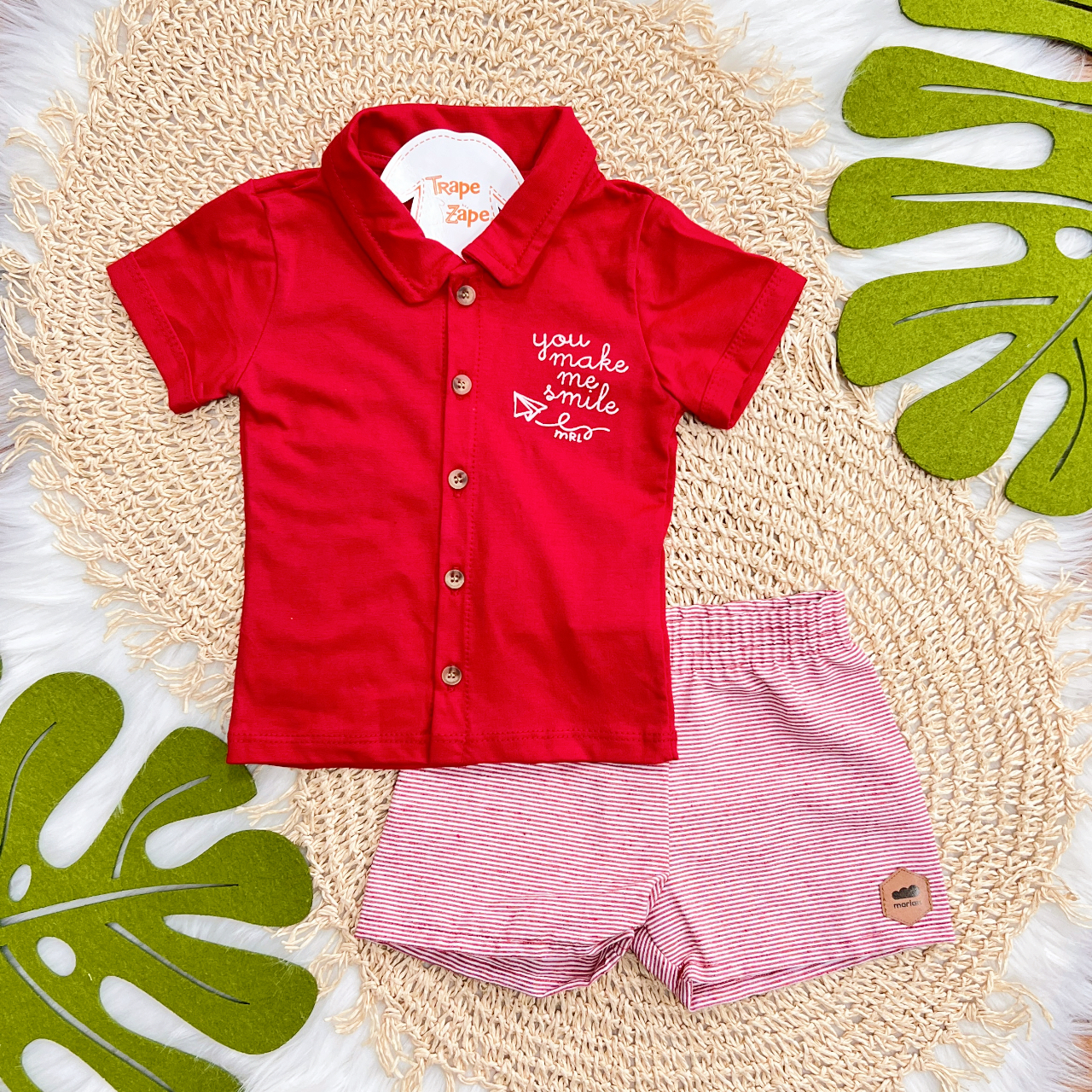 Tags:Conj., Camisa, Smile", Bermuda, Listrada, Vermelho