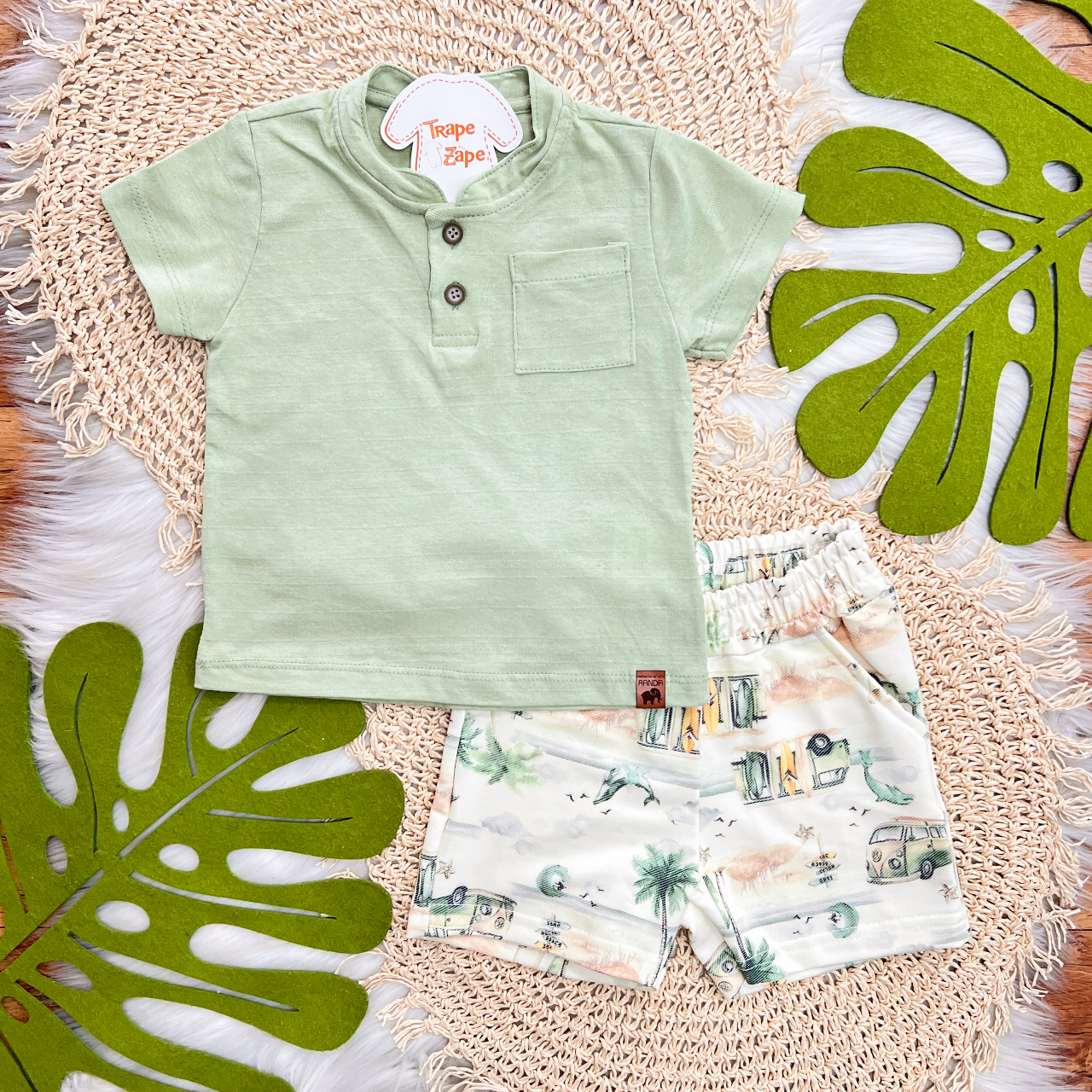 Tags:Conj., Camiseta, Bolsinho, Bermuda, Praia, Verde, White