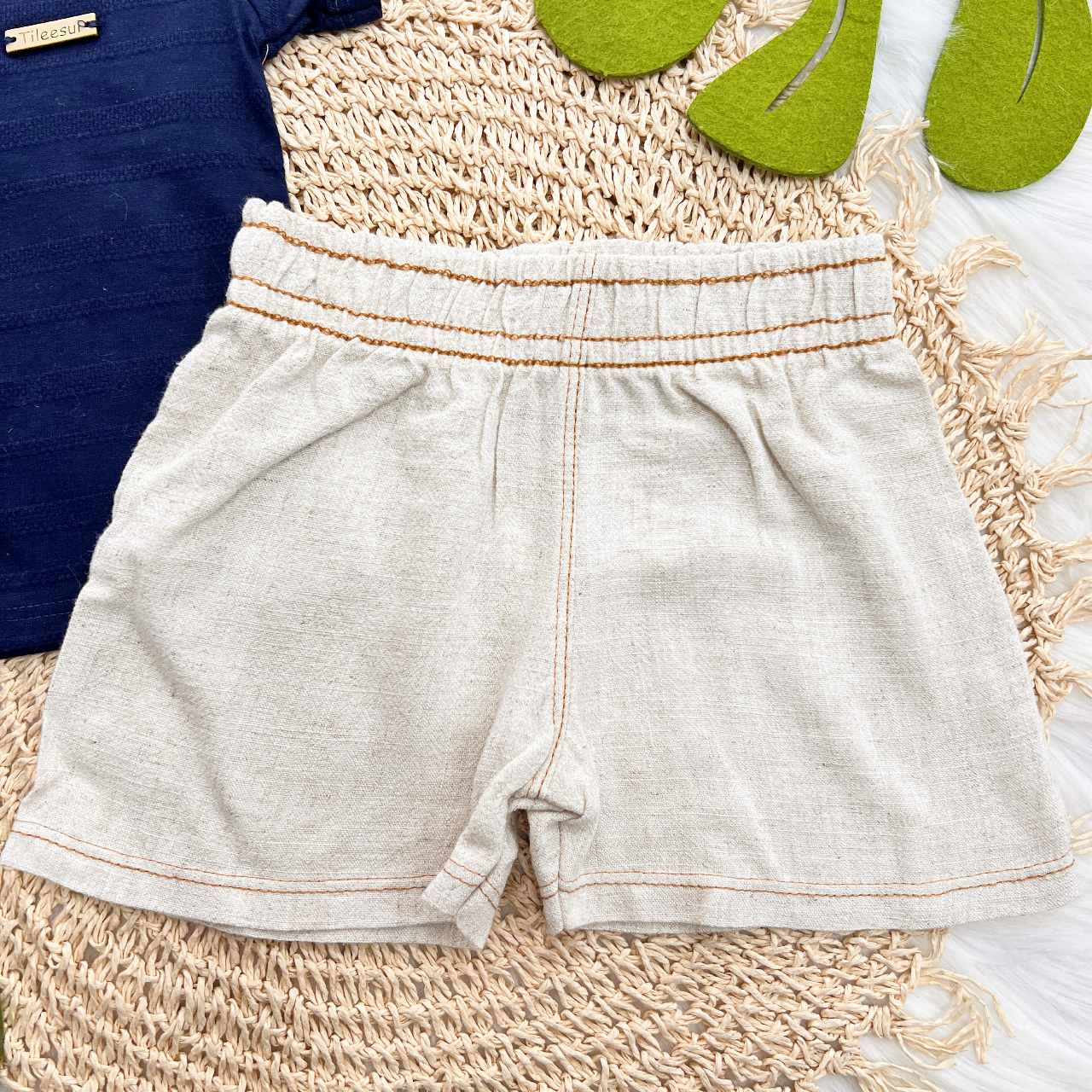 Tags:Conj., Camiseta, Botões, Bermuda, Linho, Marinho, Areia