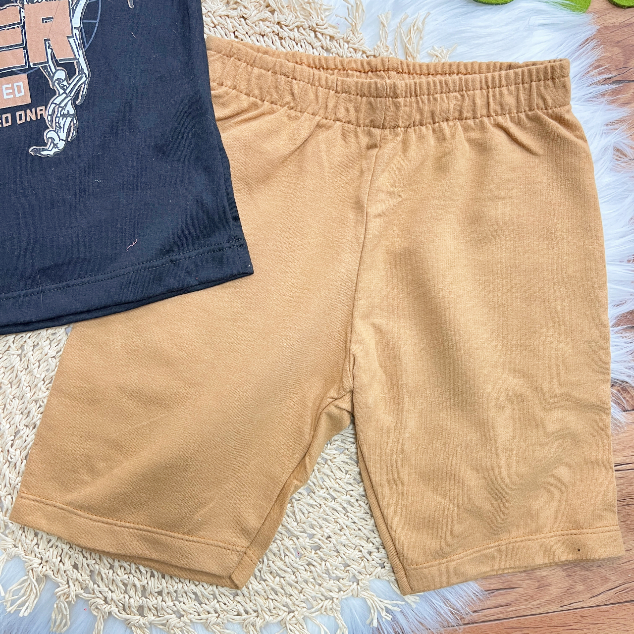 Tags:Conj., Camiseta, Danger, Bermuda, Moletinho, Preto, Caramelo