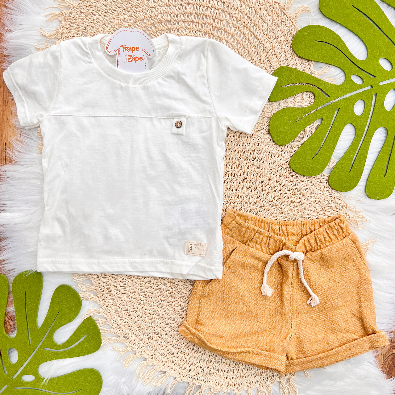 Tags:Conj., Camiseta, Bermuda, Moletinho, White, Mostarda