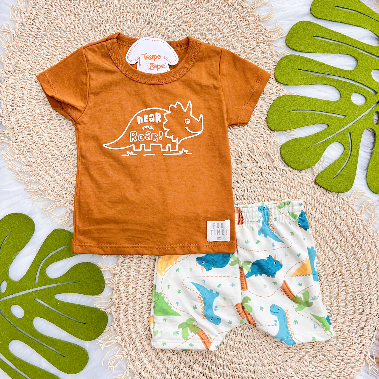 Tags:Conj., Camiseta, Bermuda, Dinos, Ferrugem, White