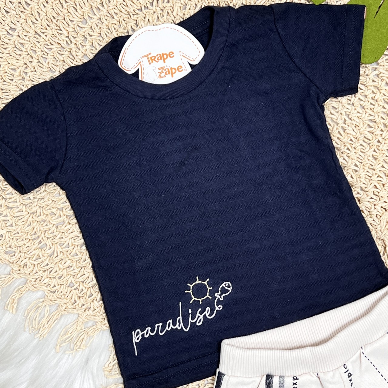 Tags:Conj., Camiseta, Paradise, Bermuda, Sunshine, Marinho, White