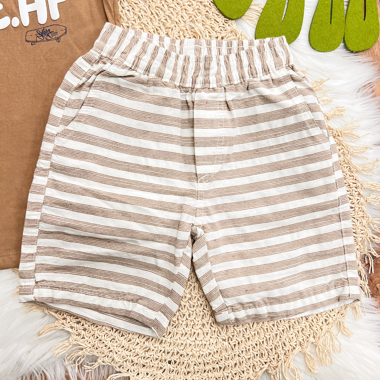 Tags:Conj., Camiseta, Skate.HF, Bermuda, Listrada, Marrom, Areia