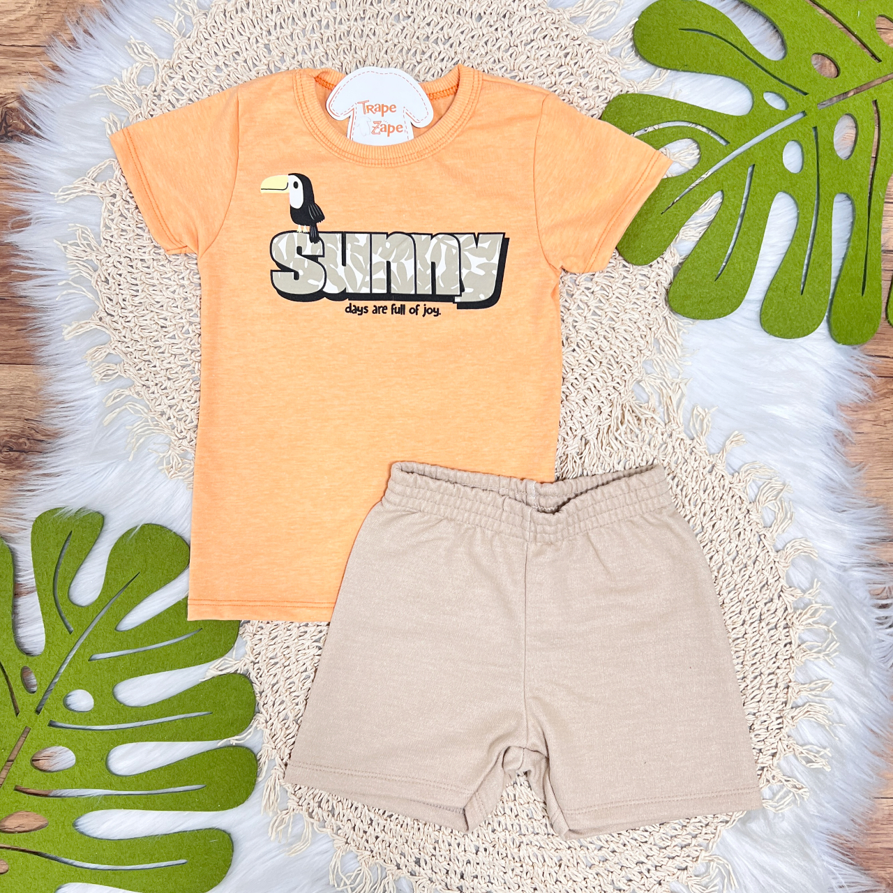 Tags:Conj., Camiseta, Sunny, Bermuda, Laranja, Areia