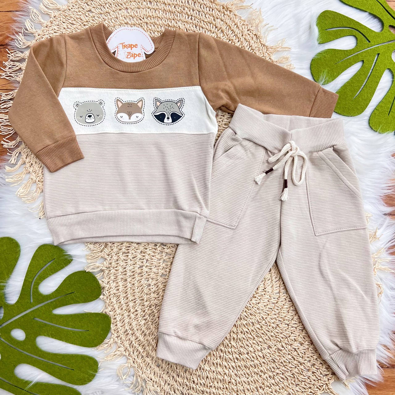 Tags:Conj., Casaco, Bichinhos, Floresta, Calça, Moletom, Areia