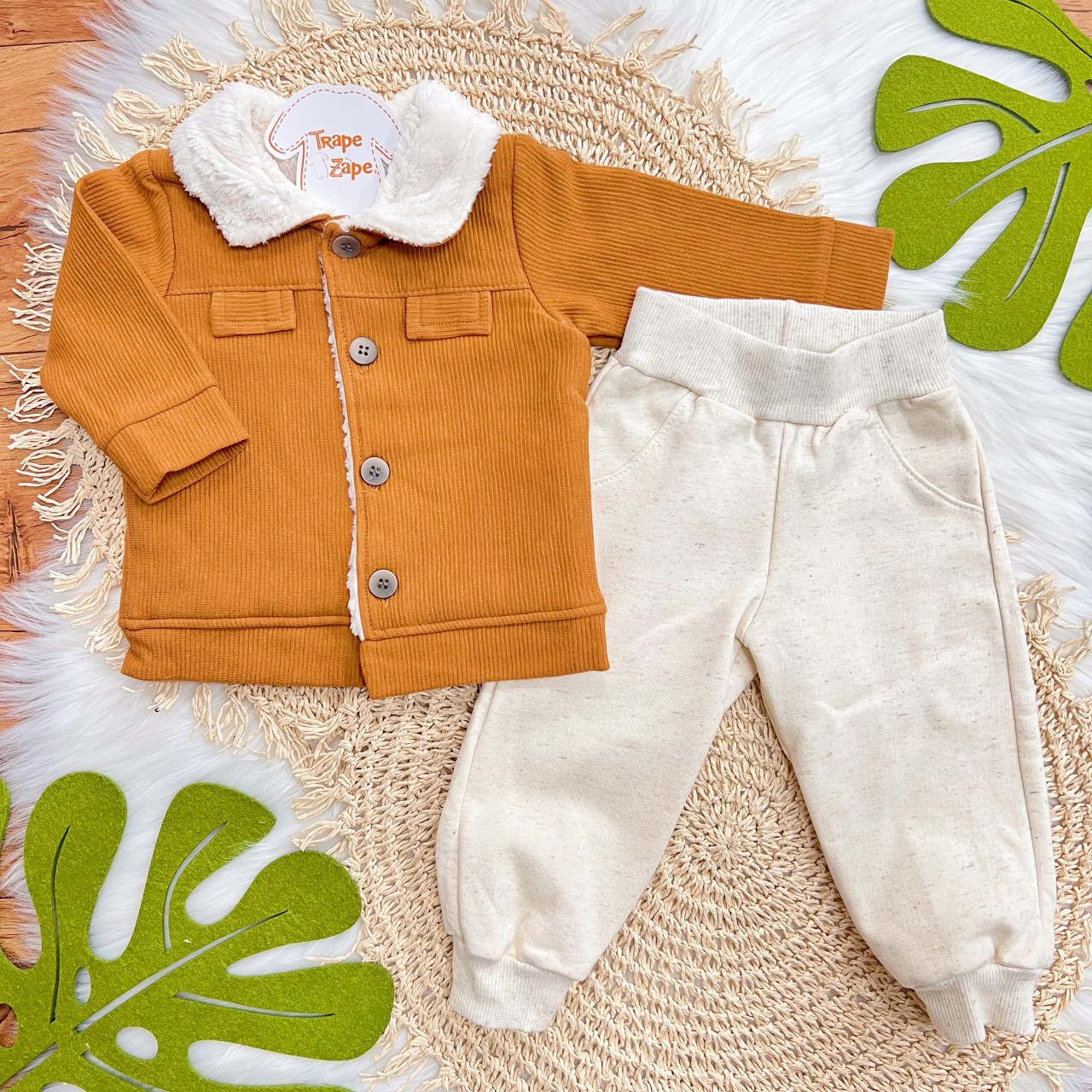 Tags:Conj., Casaco, Canelado, Cotele, Pelinho, Calça, Linho, Ferrugem