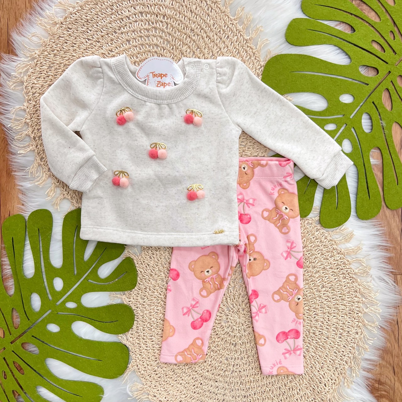 Tags:Conj., Casaco, Linho, Pompons, Calça, Legging, Plush, Areia