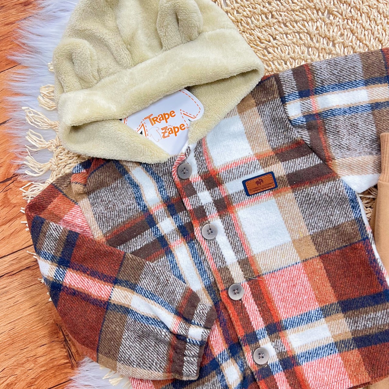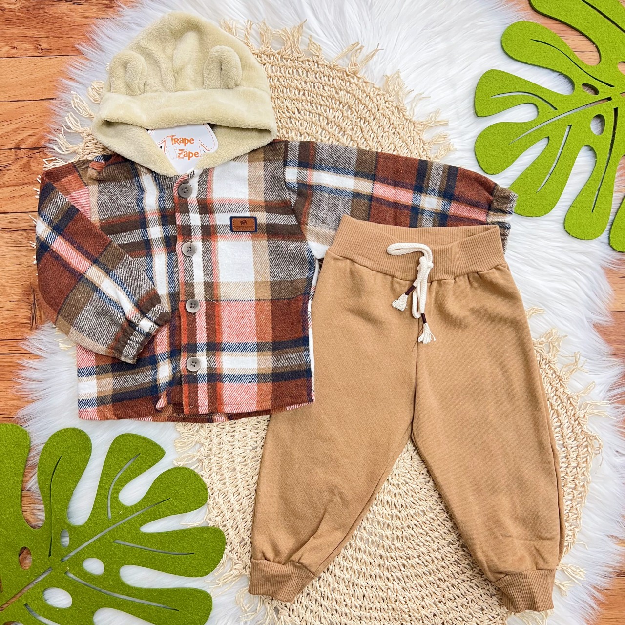 Tags:Conj., Casaco, Flanelado, Xadrez, Capuz, Pelinho, Calça, Moletom, Marrom