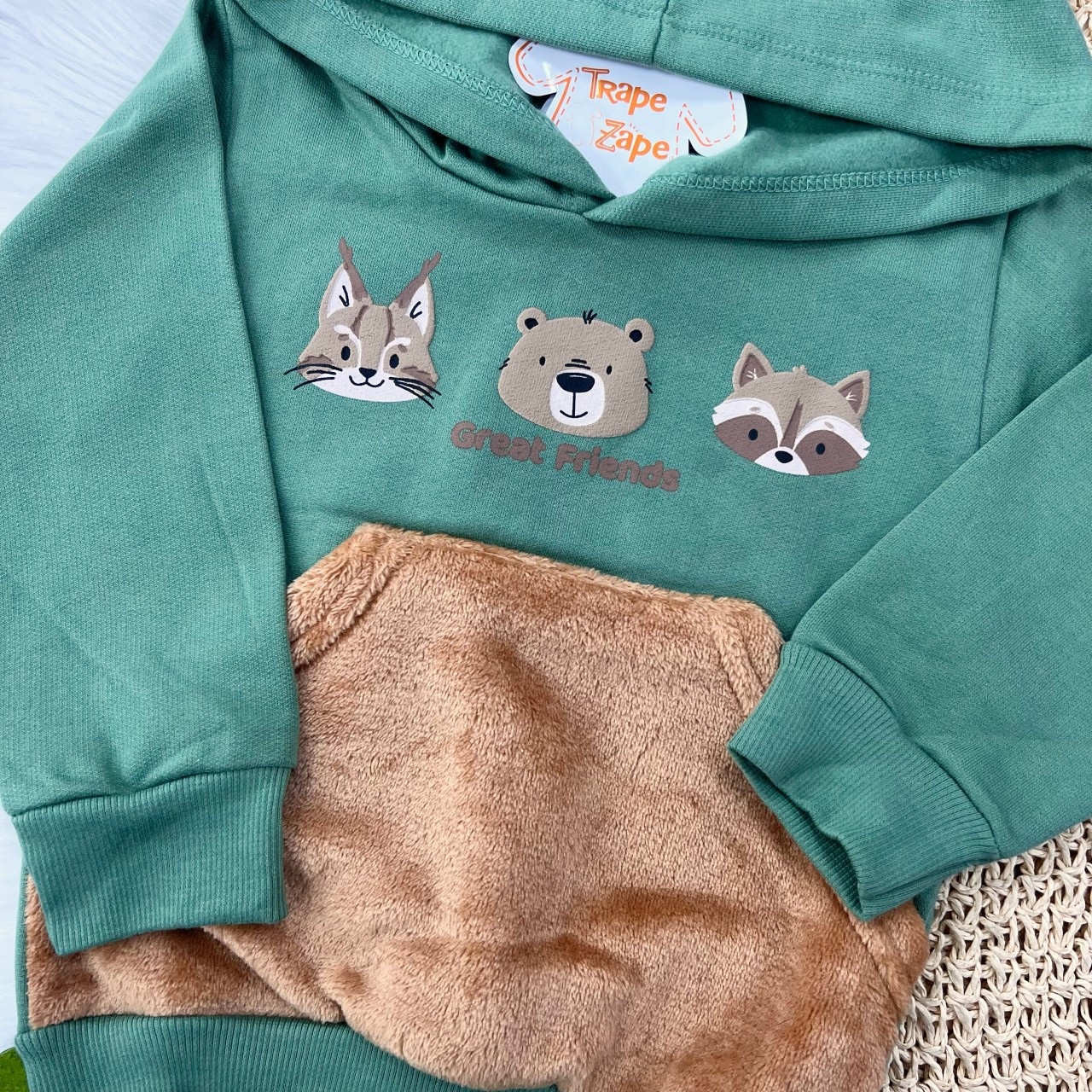 Tags:Conj., Casaco, Great, Friends, Pelinhos, Calça, Moletom, Verde, Marrom