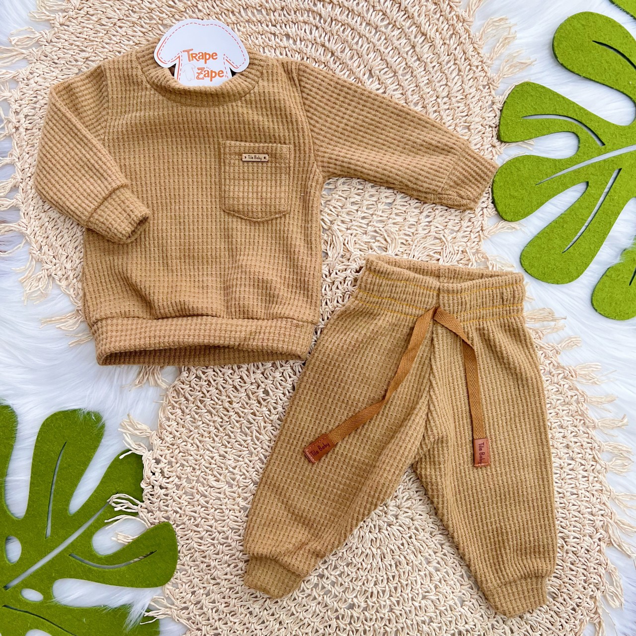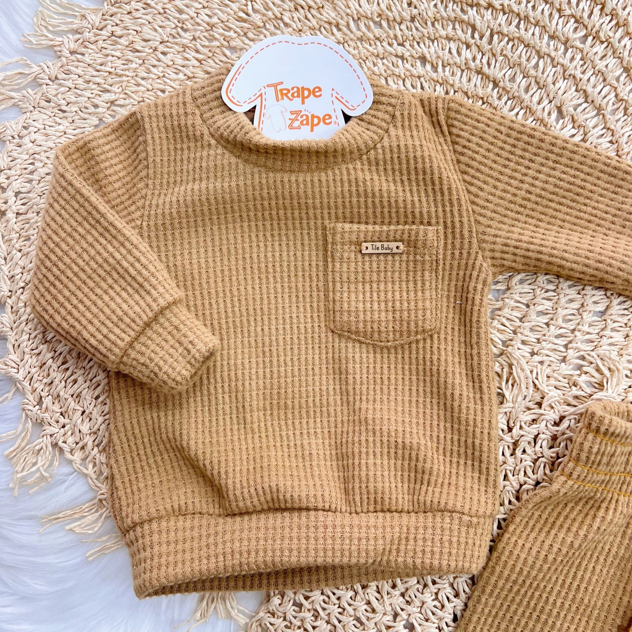 Tags:Conj., Casaco, Malha, Wafle, Calça, Caramelo
