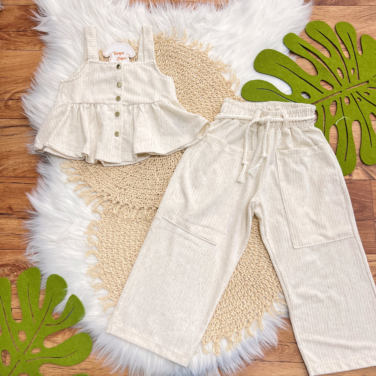 Tags:Conj., Cropeed, Calça, Pantacourt, Linho, Areia