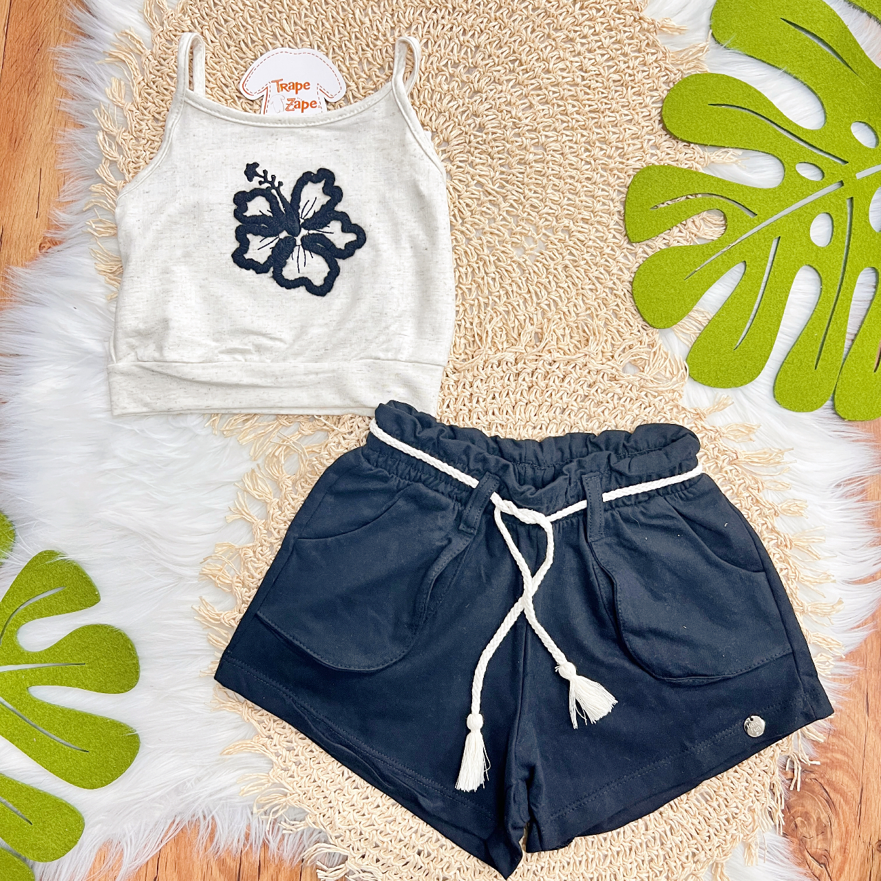 Tags:Conj., Cropped, Linho, Short, Bolsos, Areia, Preto