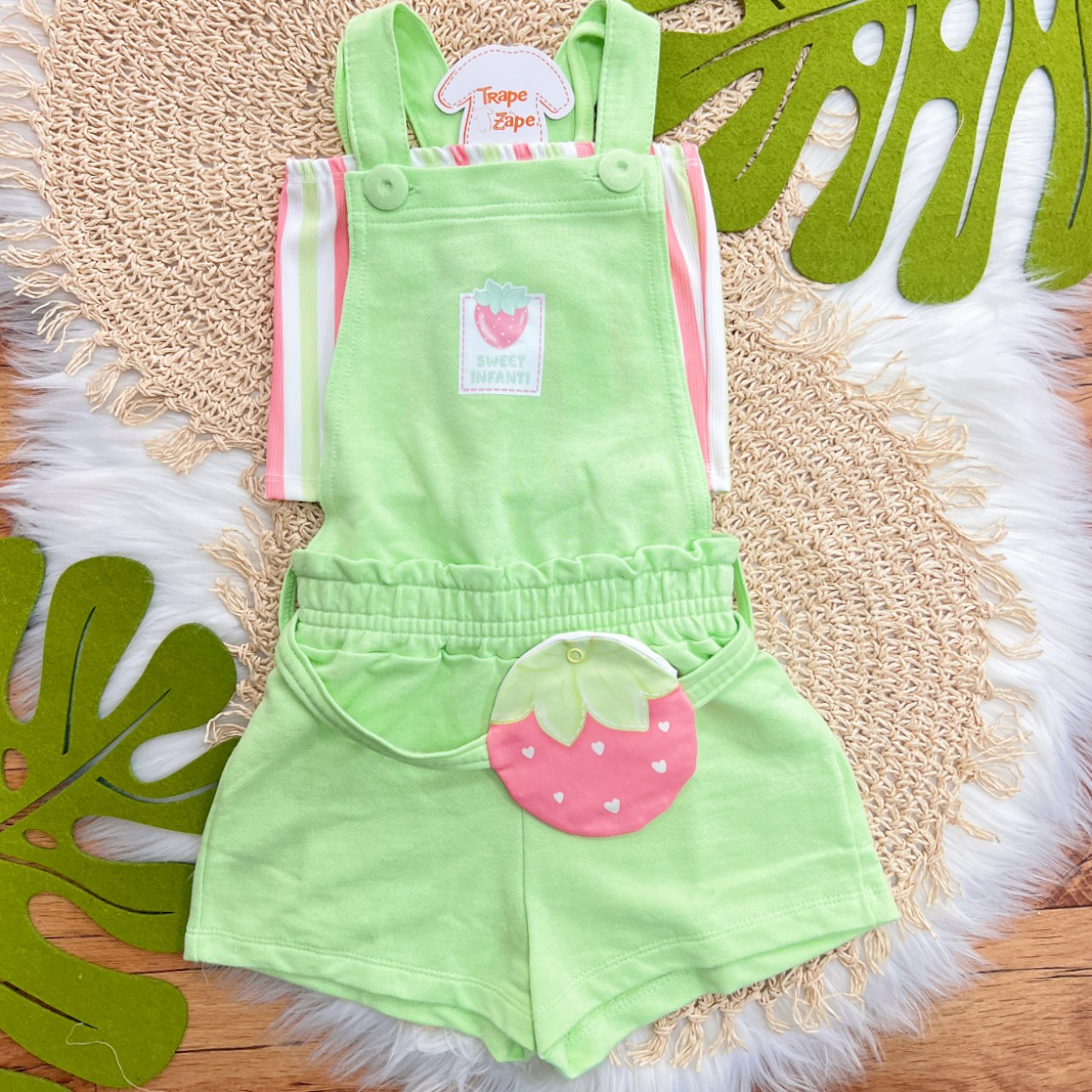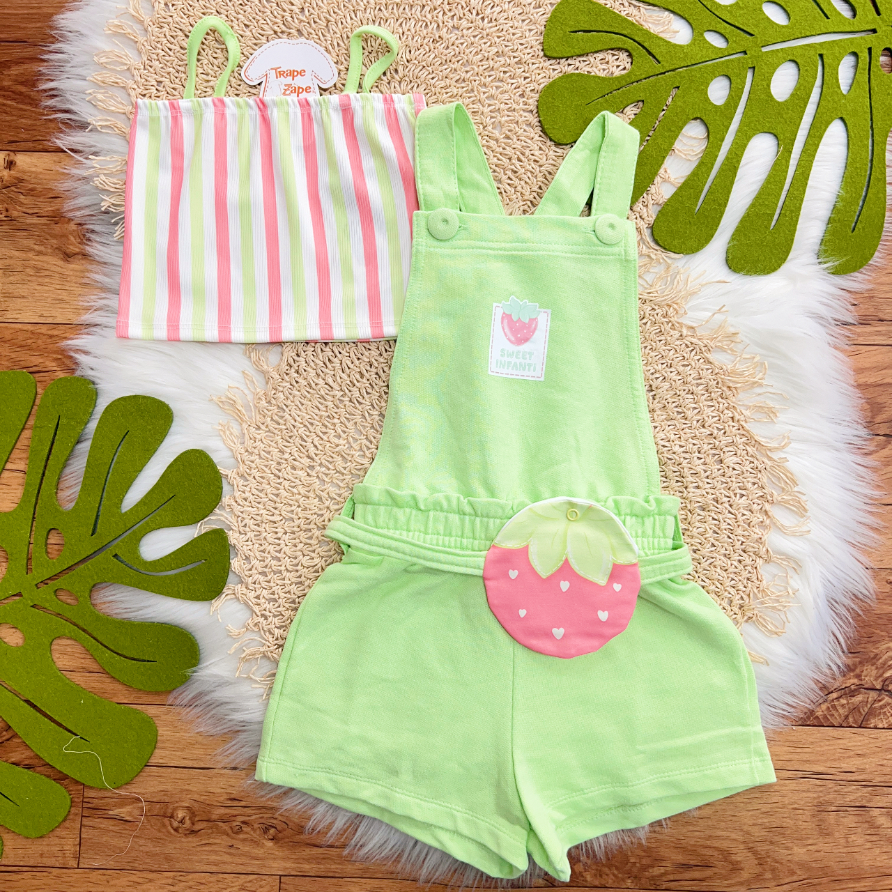 Tags:Conj., Cropped, Listrado, Jardineira, Curta, Pochete, Morango, Verde